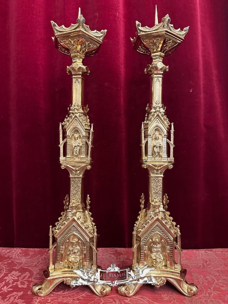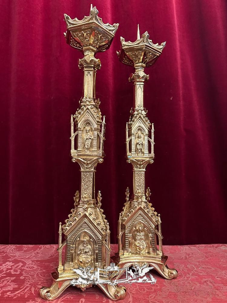 Candle Holders Measures Without Pin style Gothic - Style en Bronze / Polished and Varnished, France 19 th century ( Anno 1885 )