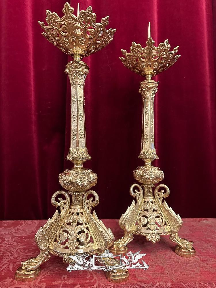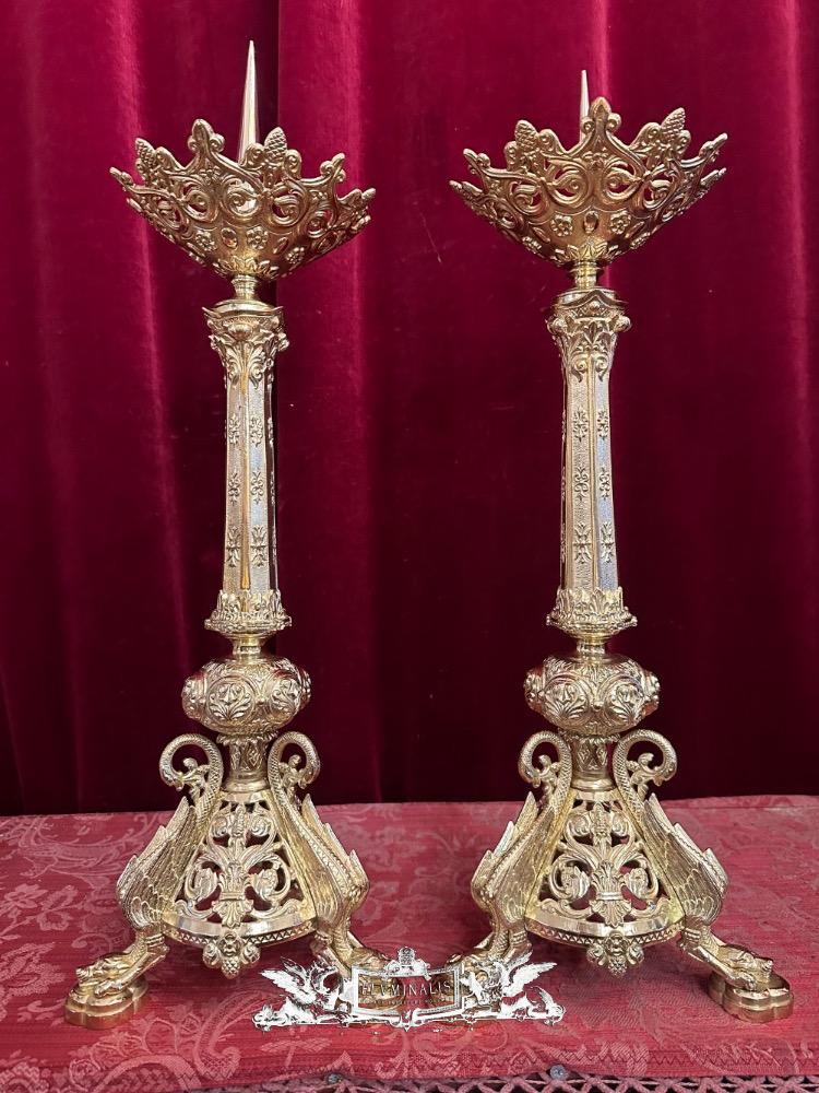 Pair Romanesque - Style Candle Holders Measures Without Pin