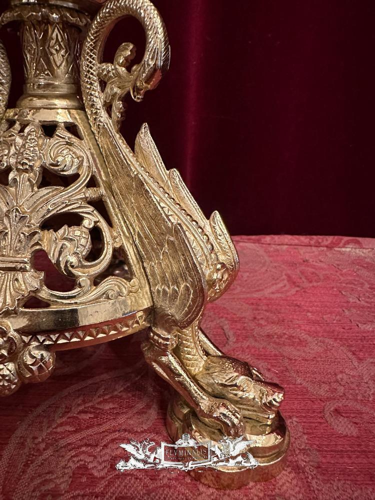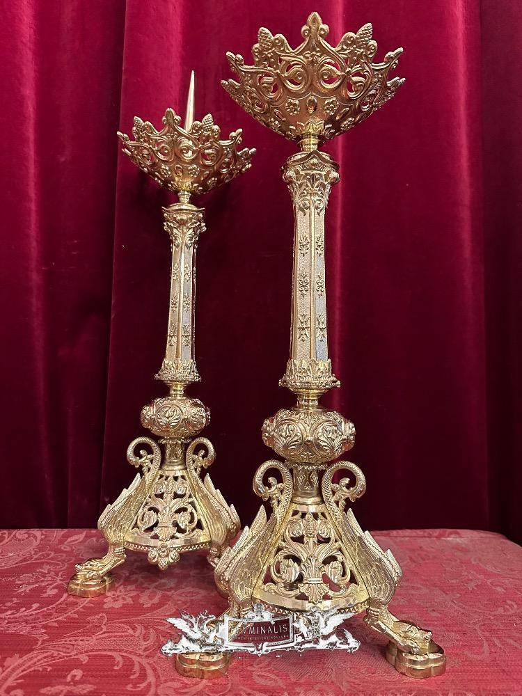 Candle Holders Measures Without Pin style Romanesque - Style en Bronze / Polished and Varnished, France 19 th century ( Anno 1875 )