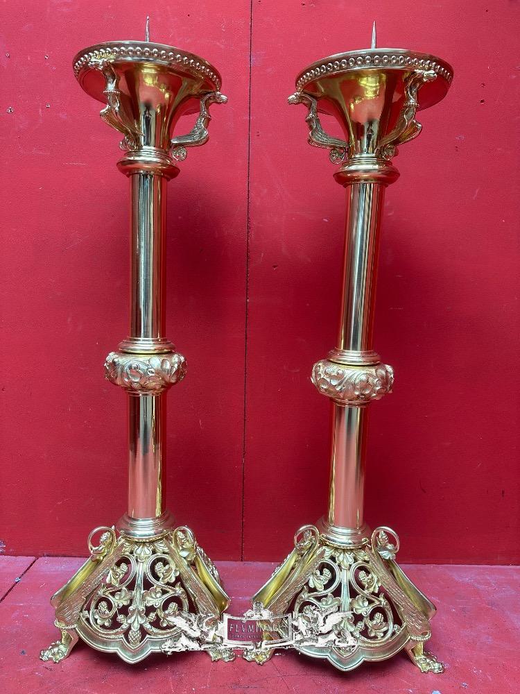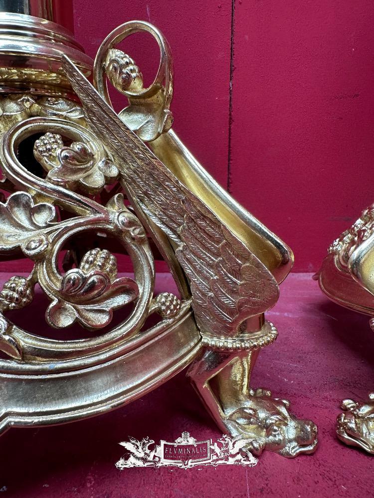 Exceptional Candle ( Paschal ) Holders Measures Without Pin style Romanesque - Style en Bronze / Polished and Varnished, France 19 th century ( Anno 1885 )