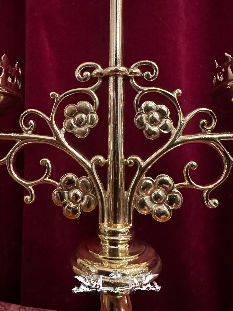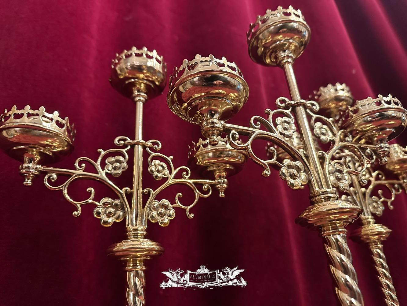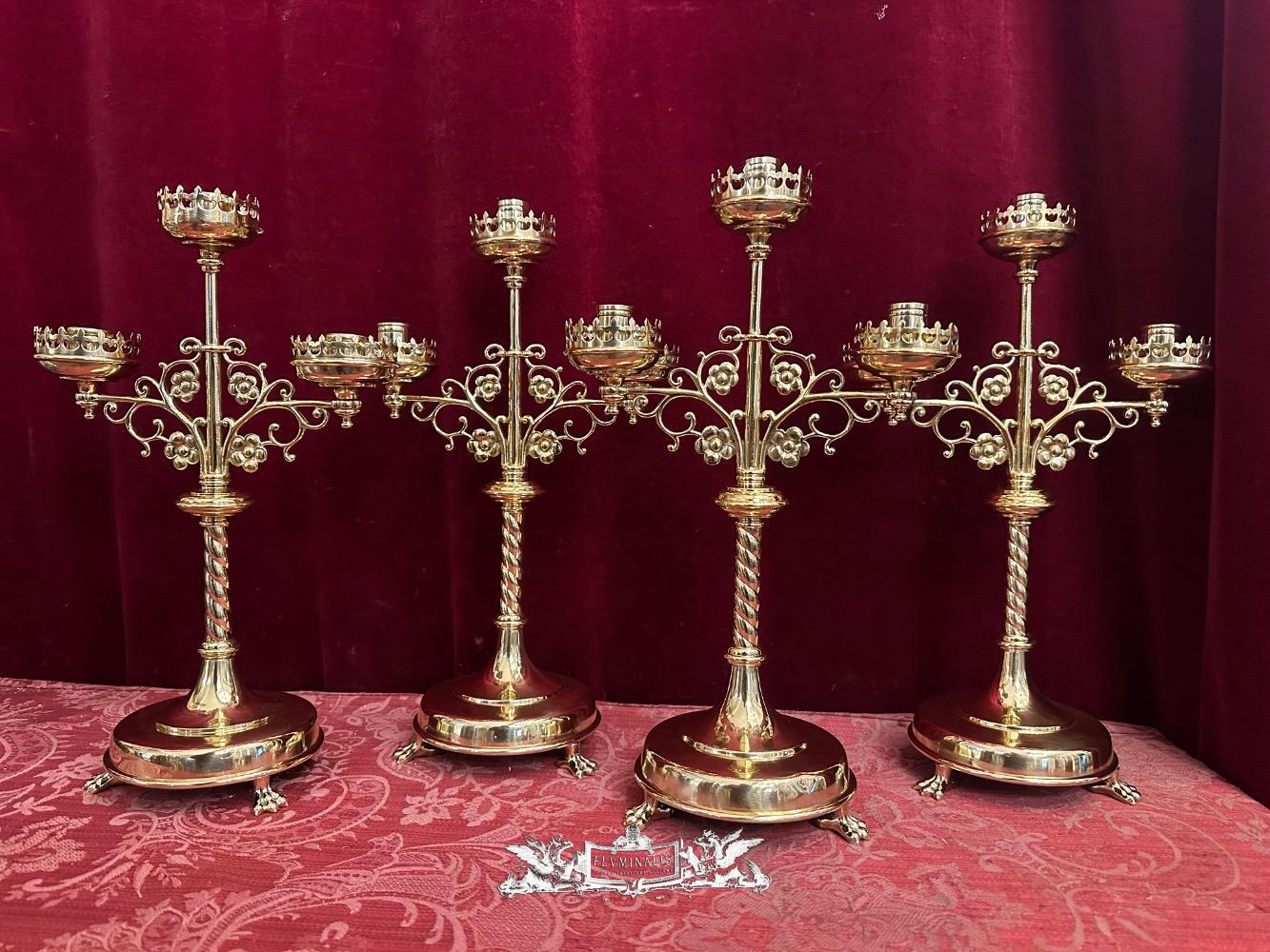 Matching Candle Holders style Gothic - Style en Brass / Bronze / Polished and Varnished, Belgium 19 th century ( Anno 1885 )