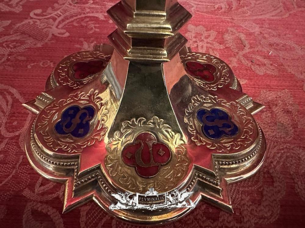 Chalice With Case style Gothic - Style en Brass / Full - Silver Cuppa / Enamel Aplications, Bruges - Belgium 19 th century