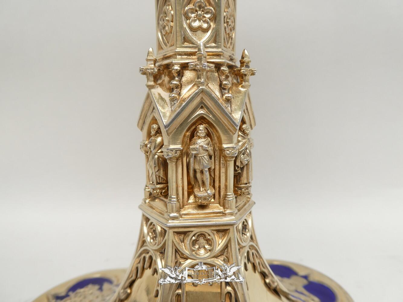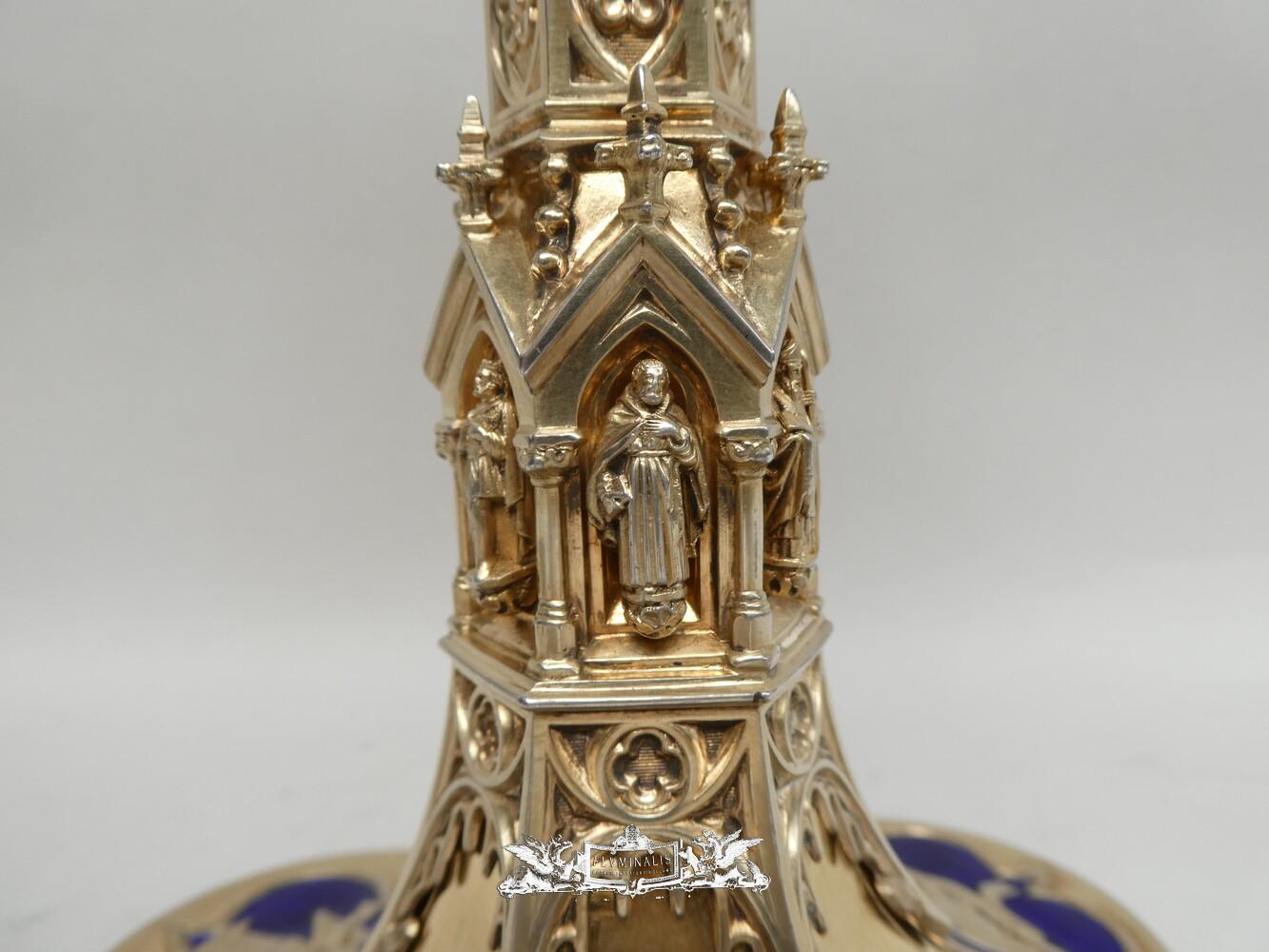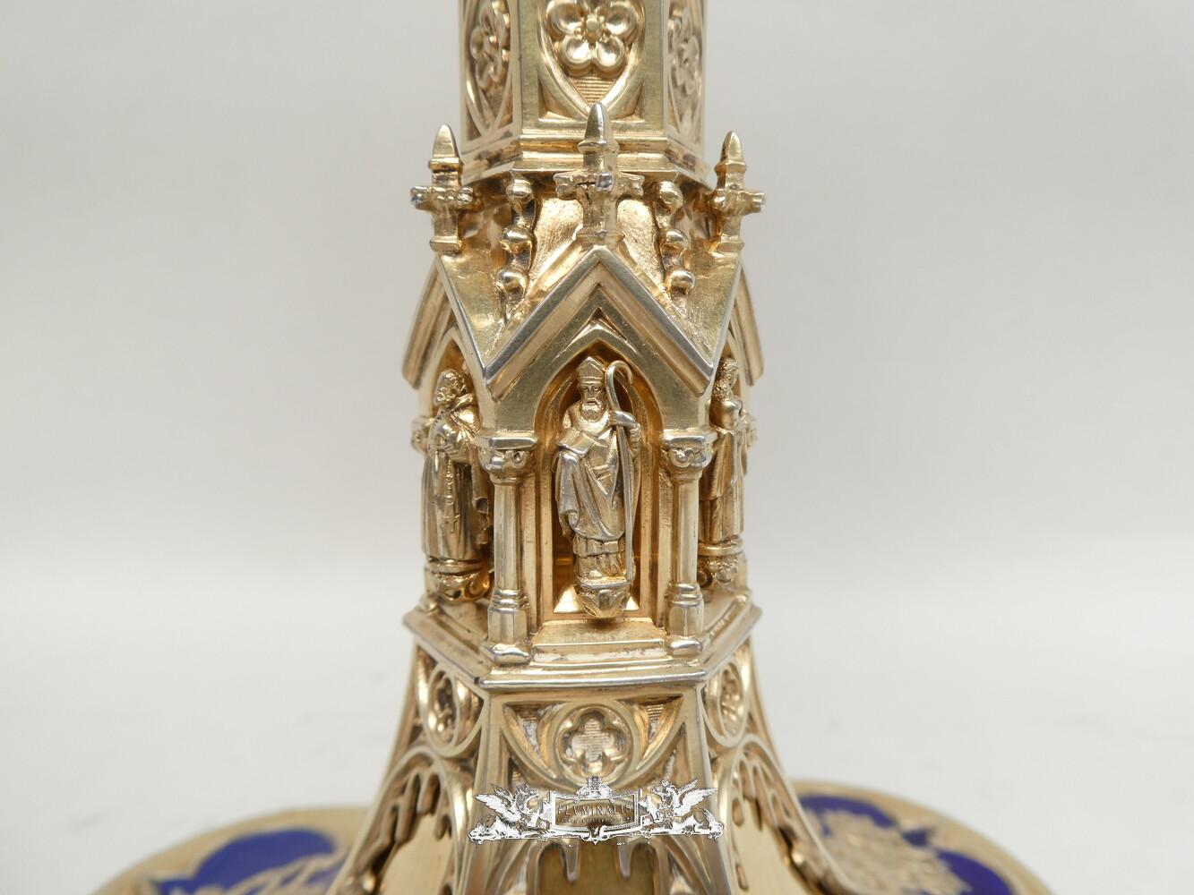 High Quality Full Silver Chalice & Paten style Gothic - Style en Full - Silver / Enamel Elements , Dutch 19 th century ( Anno 1875 )