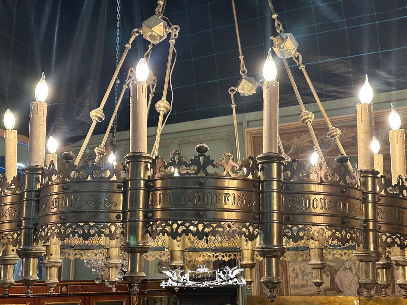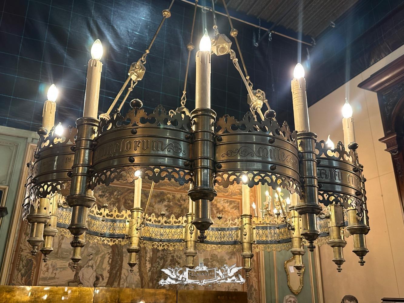Exceptional Chandelier style Gothic - Style en Brass / Bronze , Belgium 19 th century ( Anno 1865 )