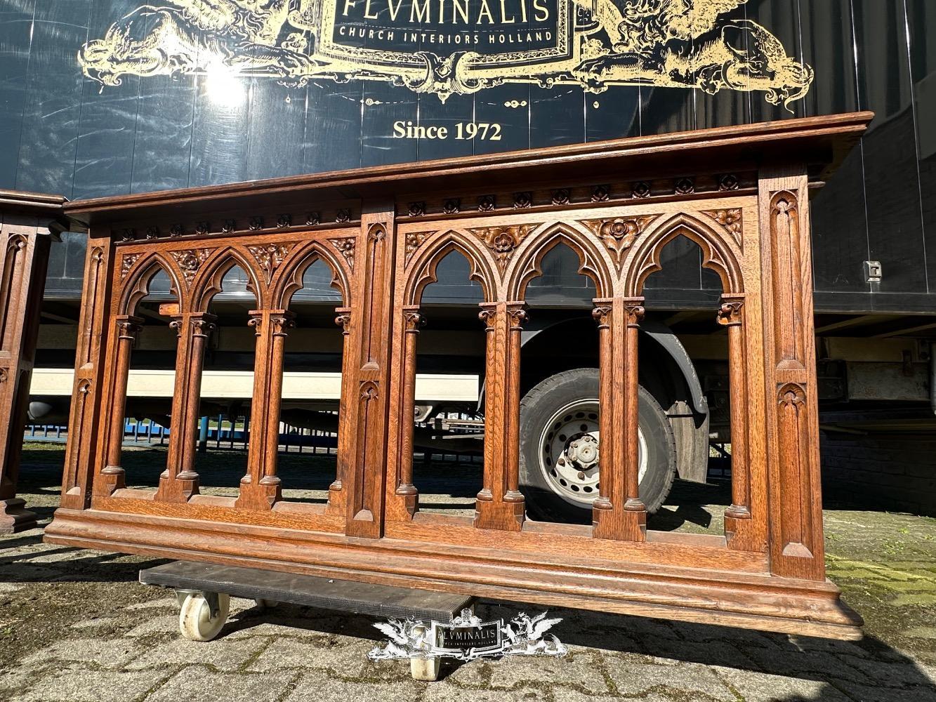 Double Sided Communion Rails. Total Lenght : 304 Cm. style Gothic - Style en Wood Oak, Belgium 19 th century ( Anno 1875 )