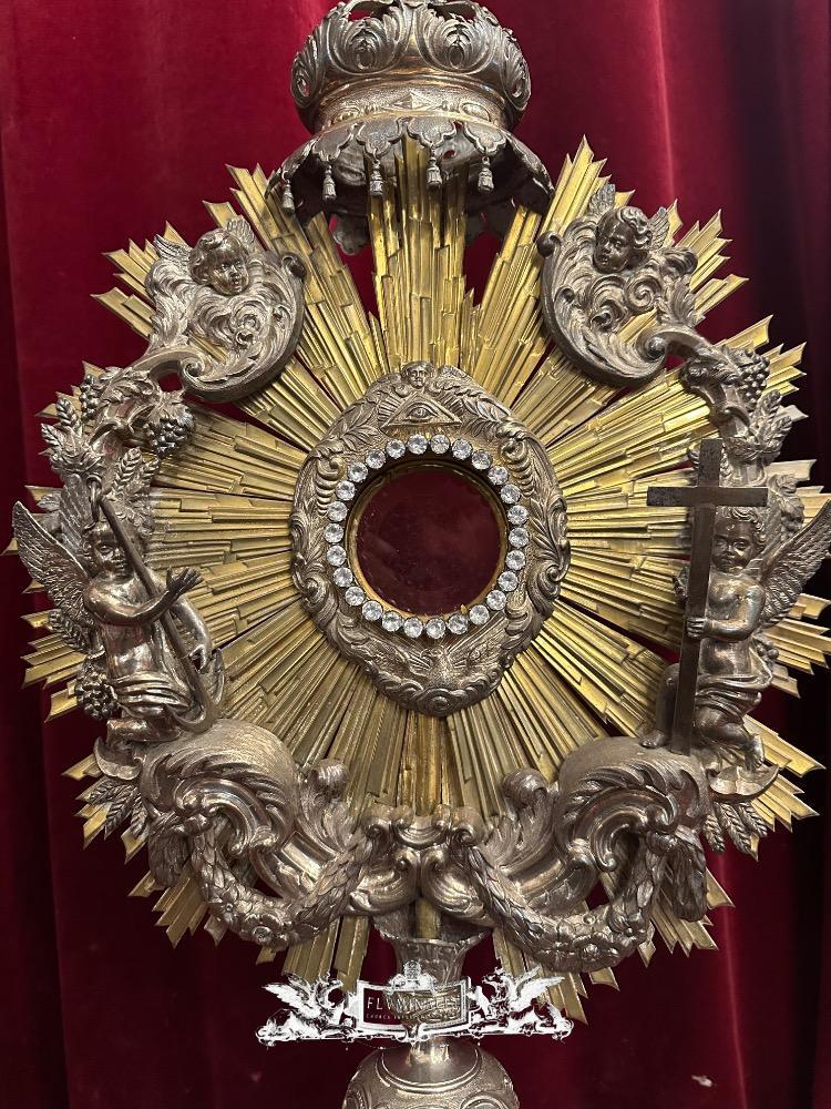 Monstrance style Baroque - Style en Mainly Full - Silver / Stones, Belgium 18 th century ( Anno 1790 )