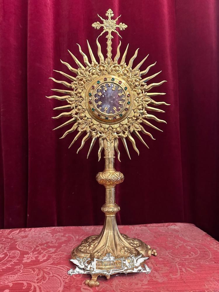 Monstrance style Gothic - Style en Brass / Gilt / Glass / Stones, Belgium 19 th century ( Anno 1885 )