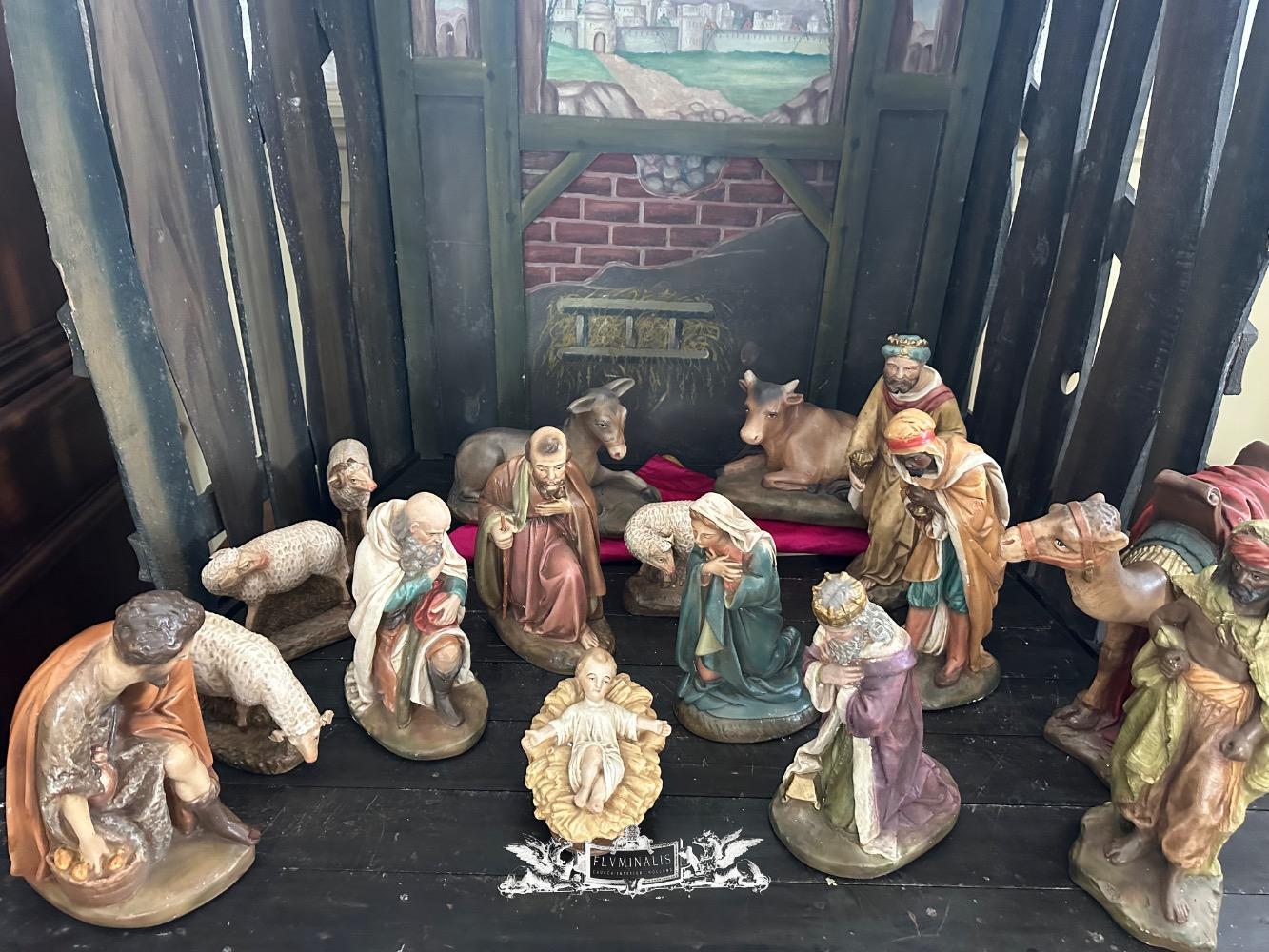 Nativity Set style Gothic - Style en Plaster polychrome, Belgium
