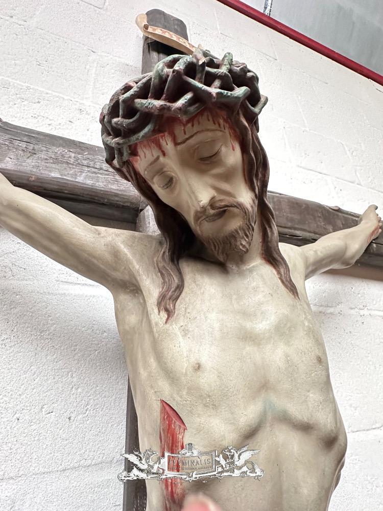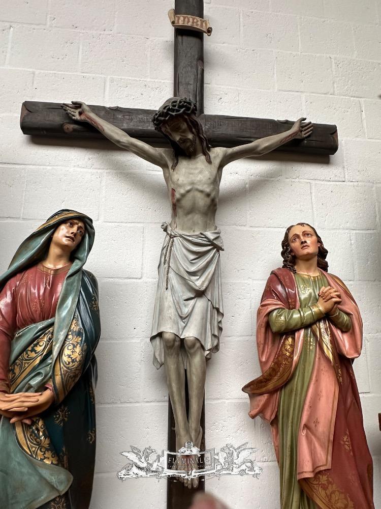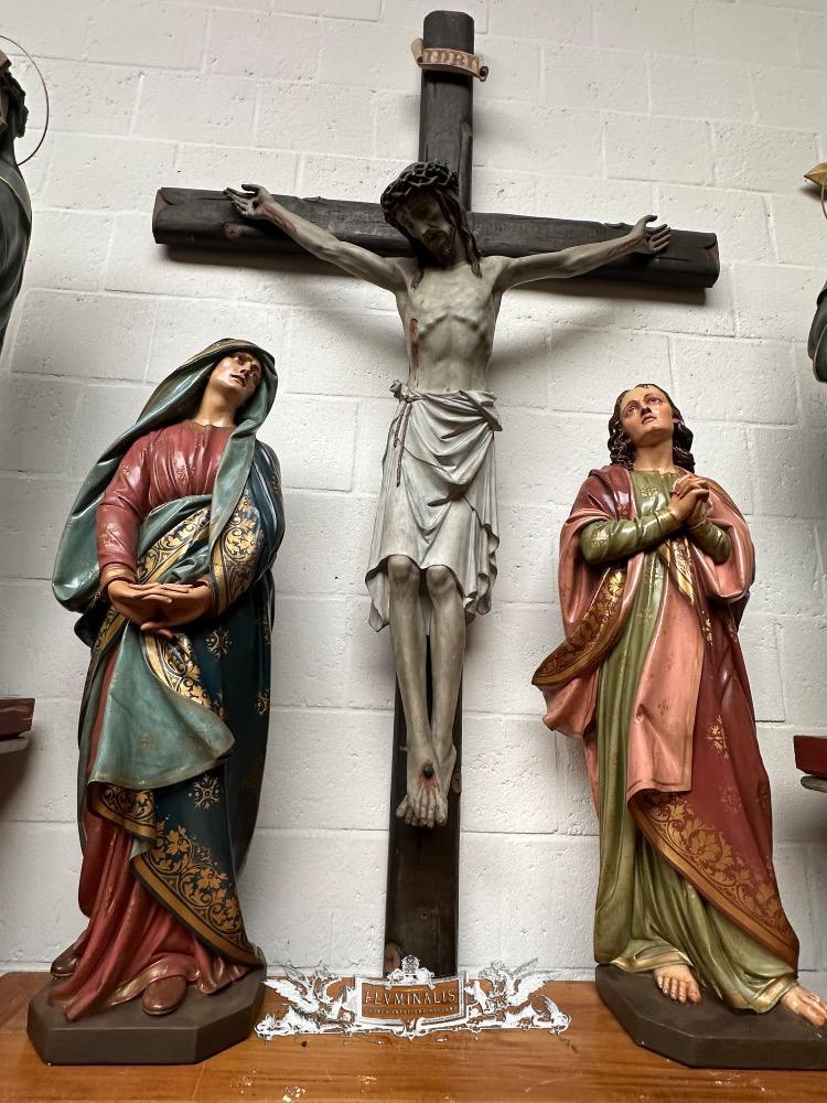 MEASURES CROSS : HEIGHT 260 CM WIDE 140 CM DEPT 35 CM. HEIGHT ST. MARY & ST. JOHN 120 CM.