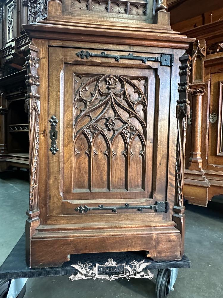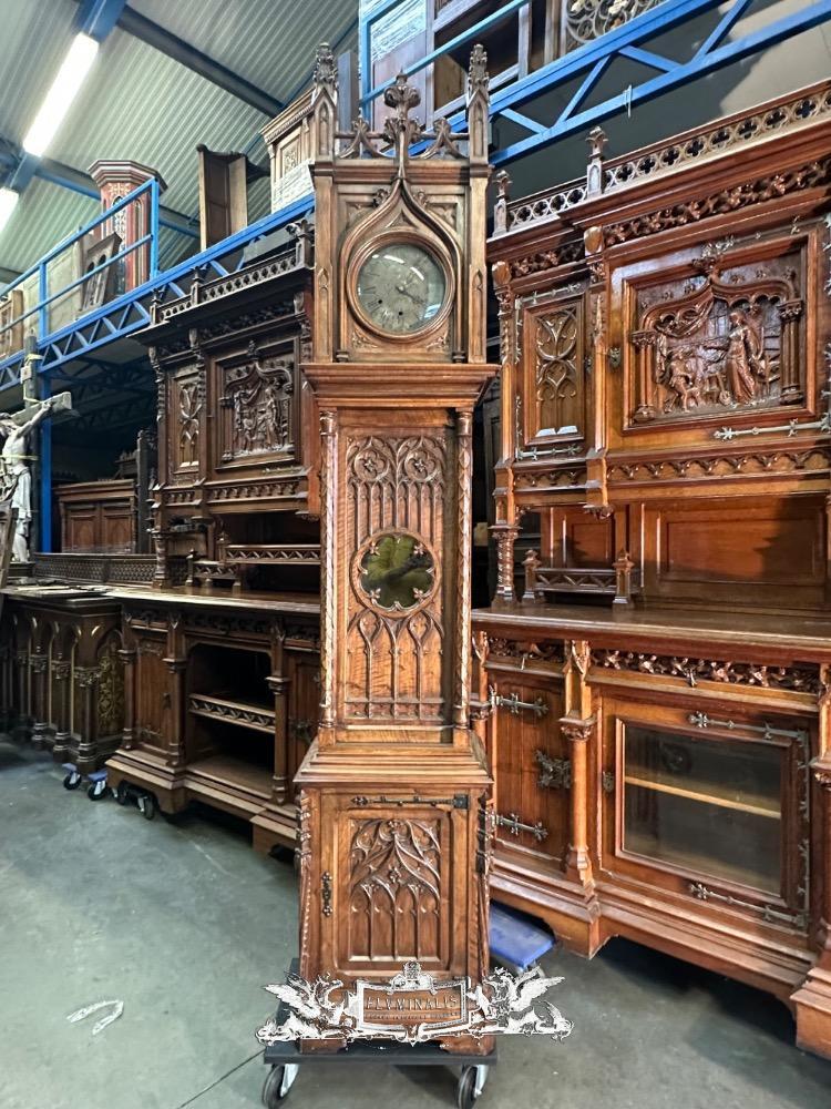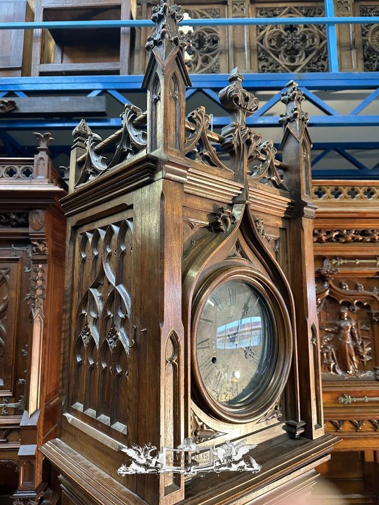 Exceptional Standing Clock style Gothic - Style en Walnut wood / Glass / Brass, France 19 th century