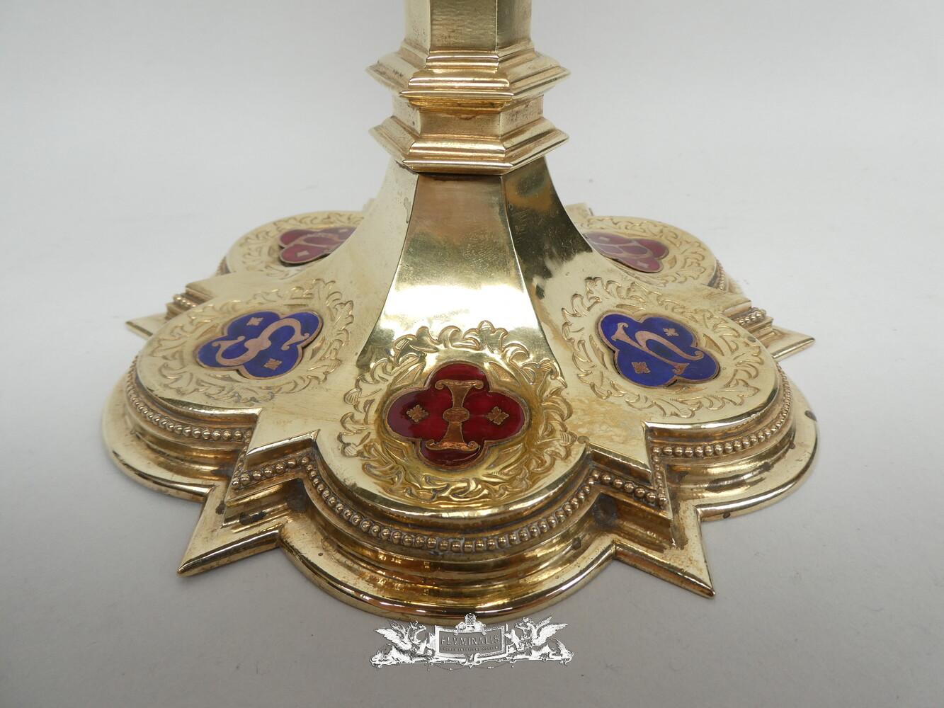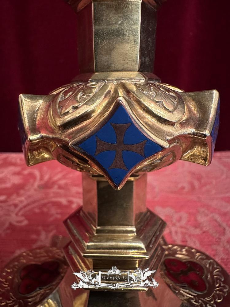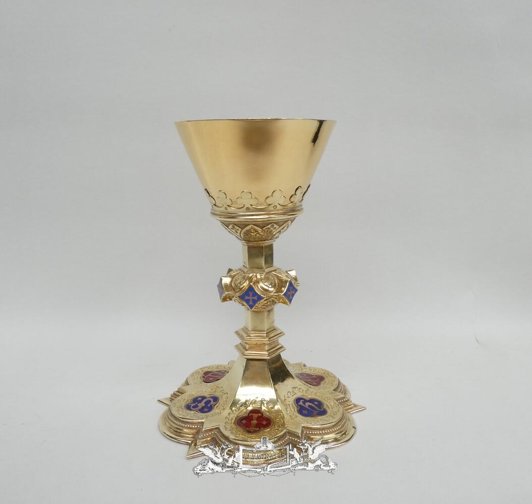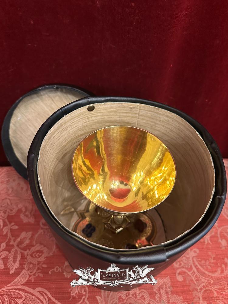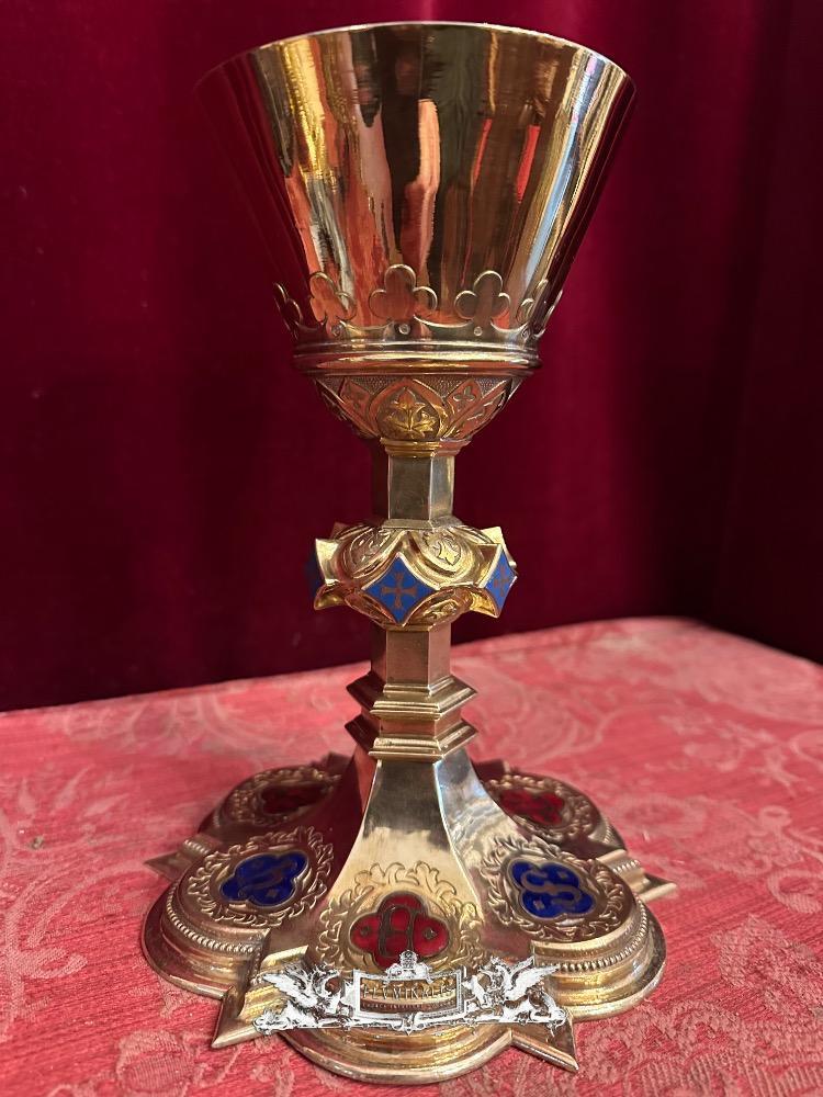 Chalice With Case style Gothic - Style en Brass / Full - Silver Cuppa / Enamel Aplications, Bruges - Belgium 19 th century