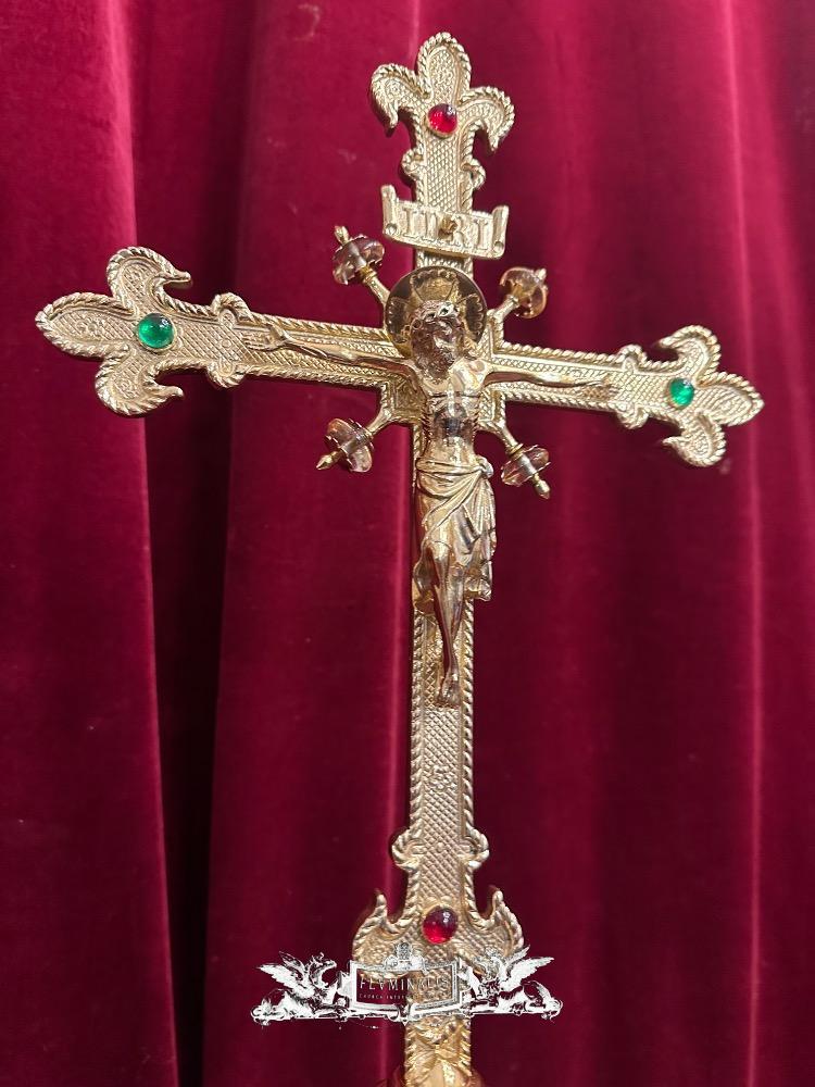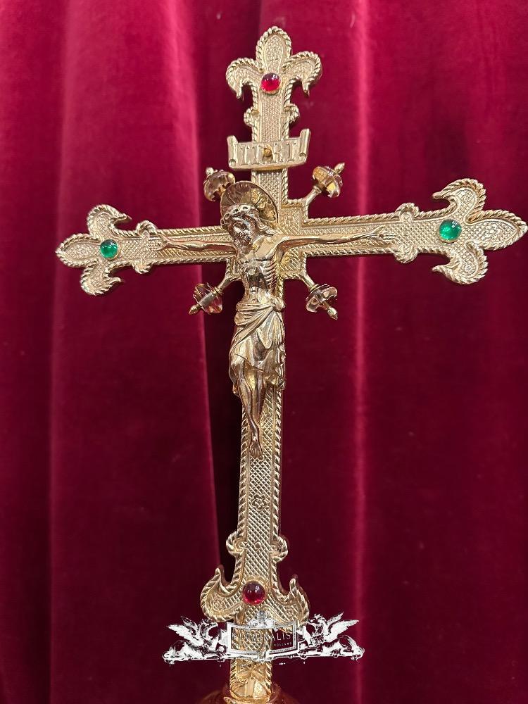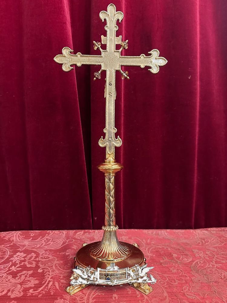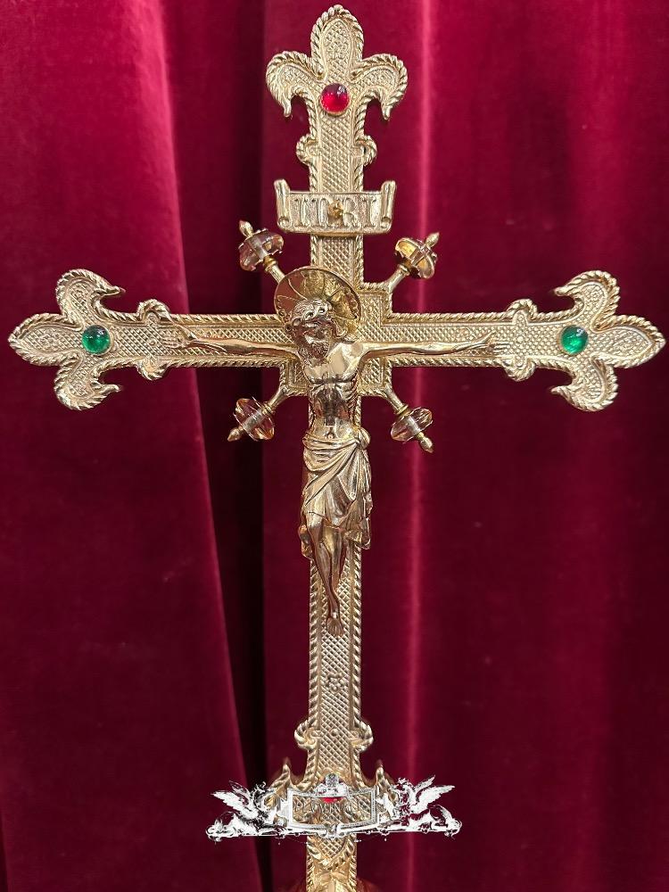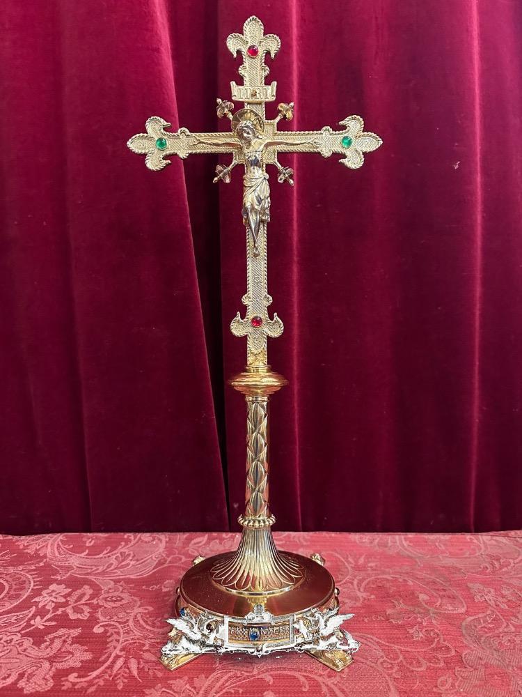 Altar - Cross style Gothic - Style en Bronze / Polished and Varnished / Stones / Glass, Bruges - Belgium 19 th century ( Anno 1885 )