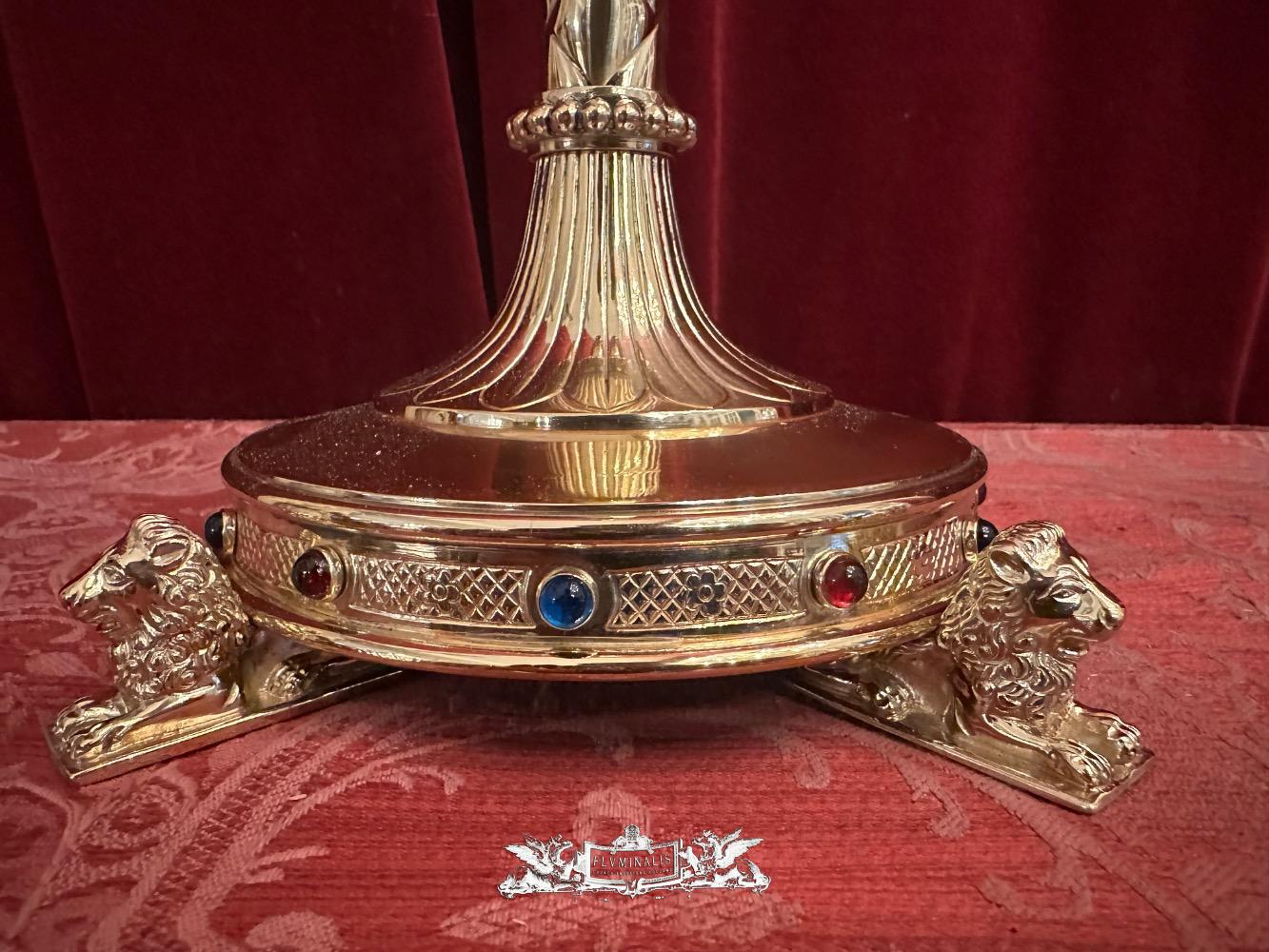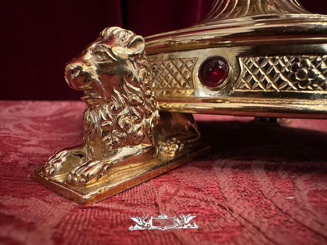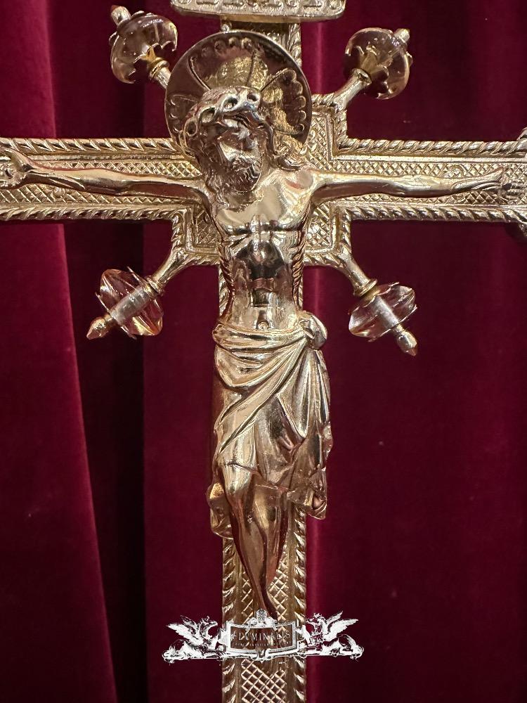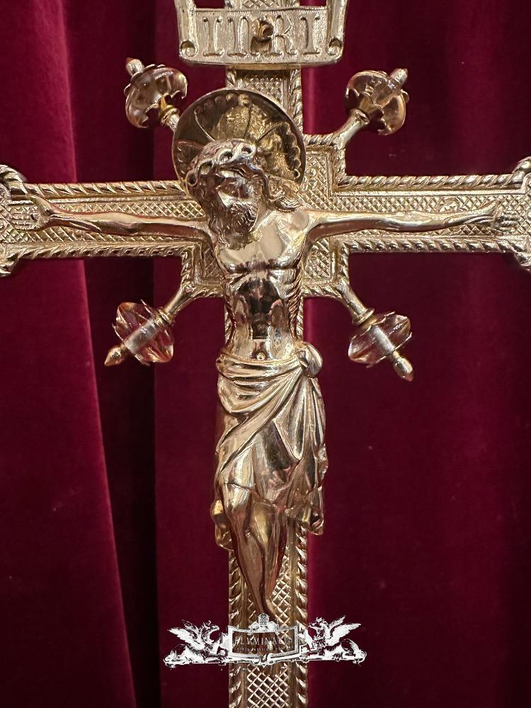 Altar - Cross style Gothic - Style en Bronze / Polished and Varnished / Stones / Glass, Bruges - Belgium 19 th century ( Anno 1885 )