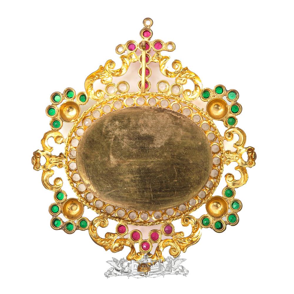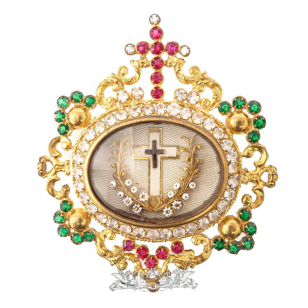 Reliquary - Relic True Cross en Brass / Glass / Wax Seal / Stones, France 19 th century