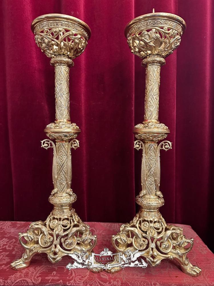 Candle Holders Measures Without Pin style Romanesque - Style en Bronze / Polished and Varnished, France 19 th century ( Anno 1865 )