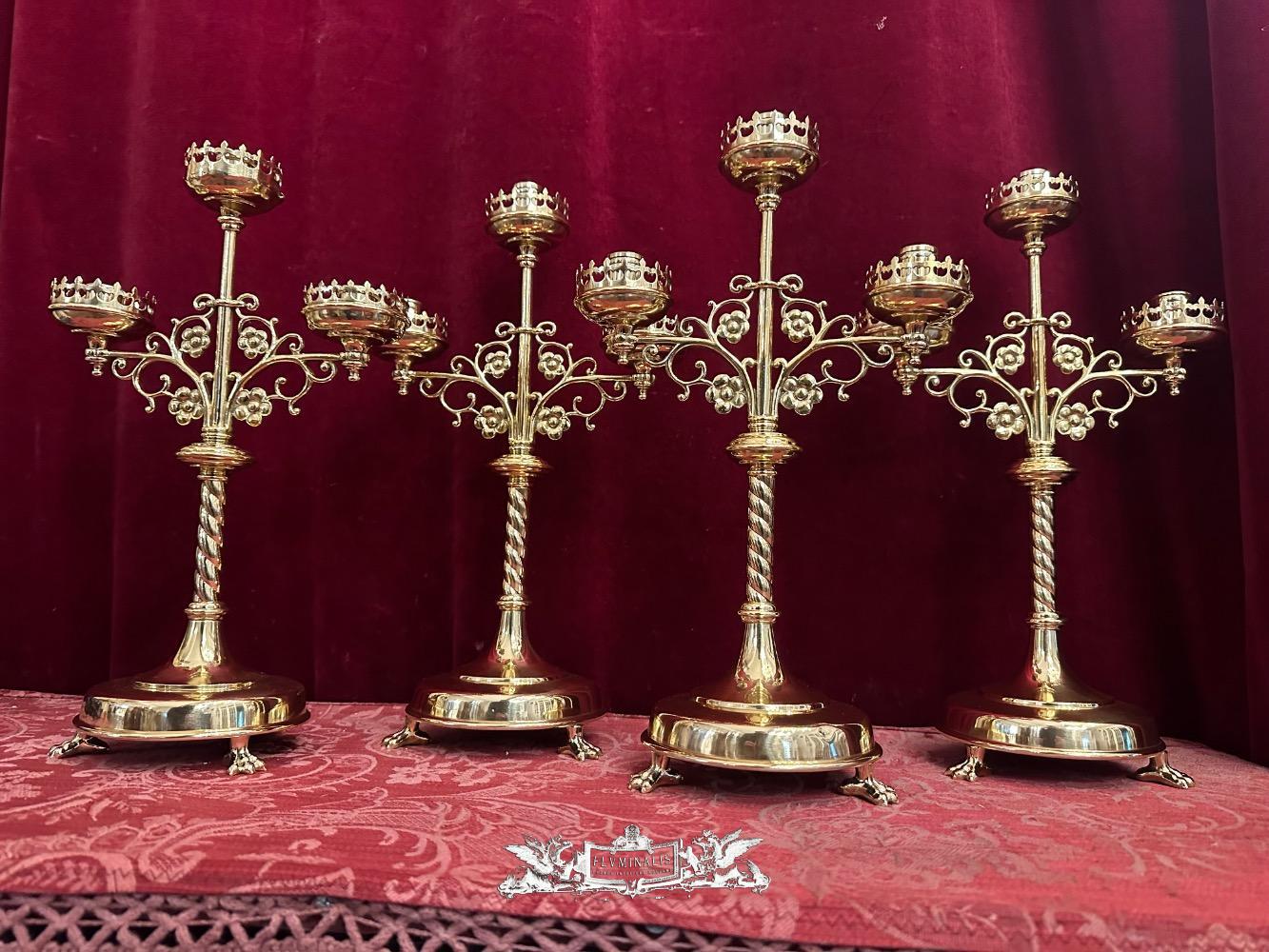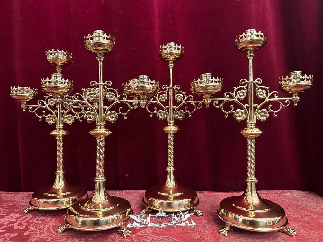 Matching Candle Holders style Gothic - Style en Brass / Bronze / Polished and Varnished, Belgium 19 th century ( Anno 1885 )