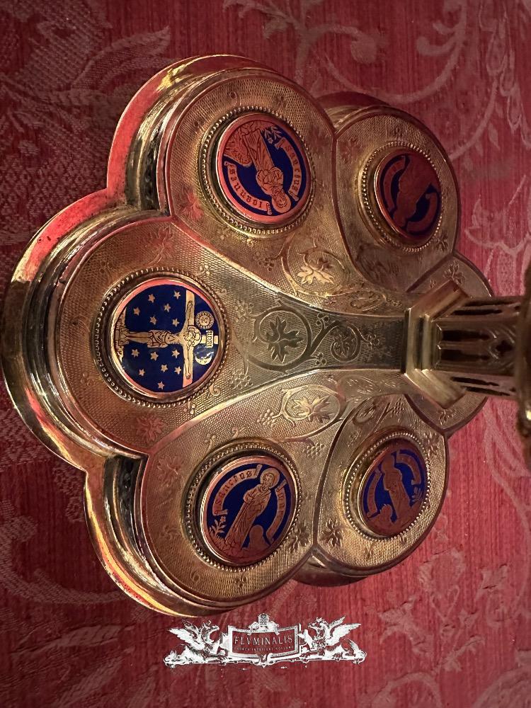Cuppa with engraved inscription 'Hic est enim calix sanguinis mei'.