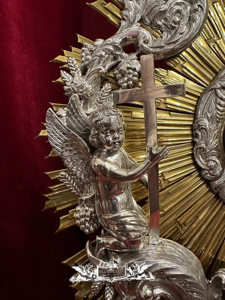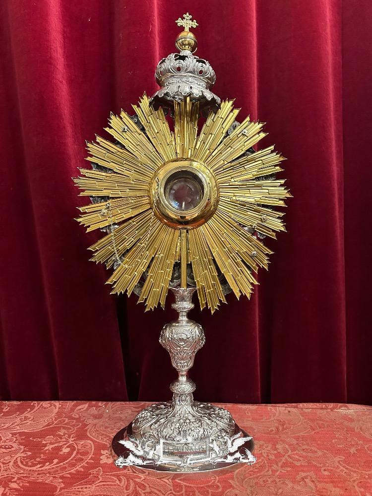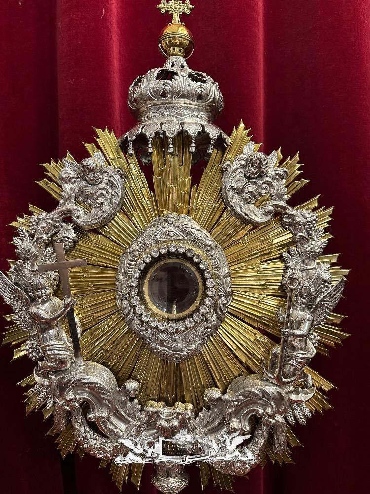 Monstrance style Baroque - Style en Full - Silver / Stones / Diamonds / Glass / Polished & Varnished, Belgium 18 th century