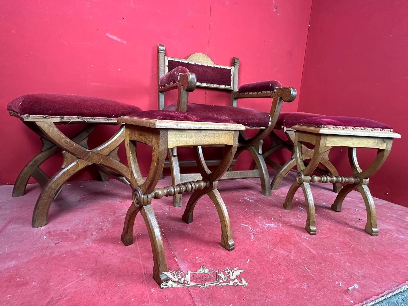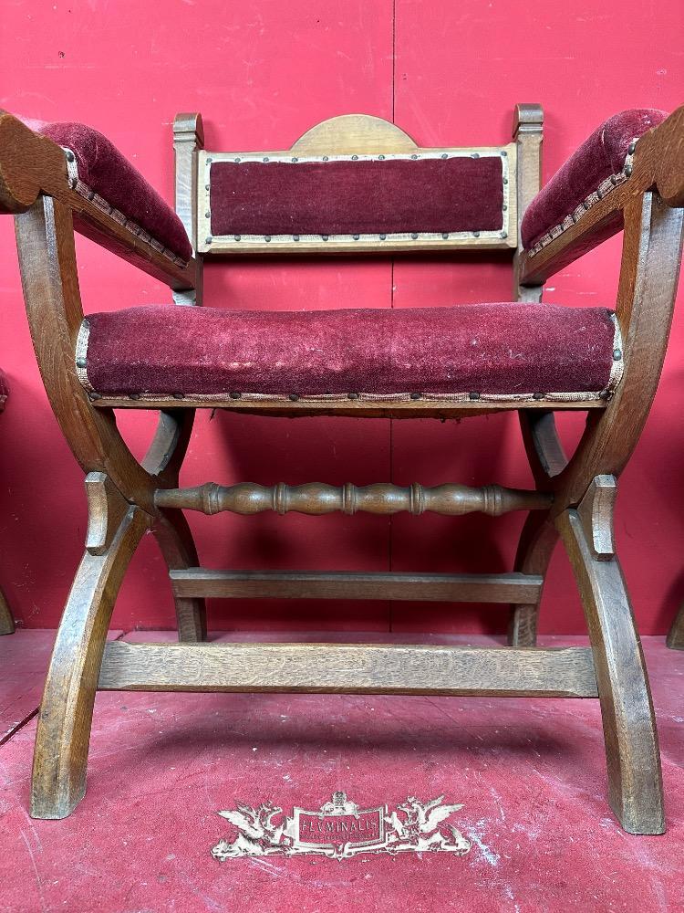 Set Altar - Seats style Gothic - Style en Wood Oak / Red Velvet, Belgium 19 th century ( Anno 1875 )