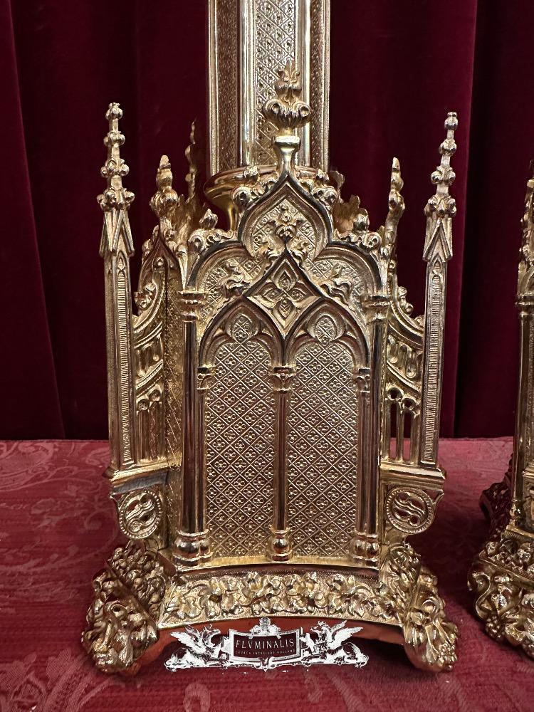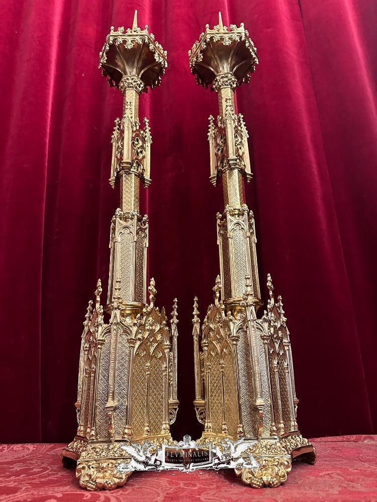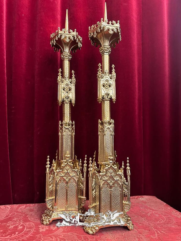Candle Holders Measures Without Pin style Gothic - Style en Bronze / Polished and Varnished, France 19 th century ( Anno 1885 )