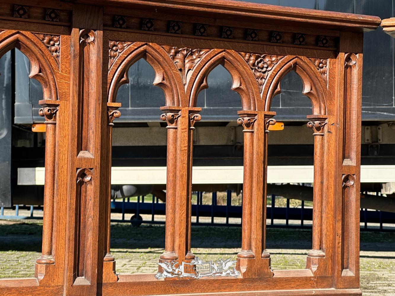 Double Sided Communion Rails. Total Lenght : 304 Cm. style Gothic - Style en Wood Oak, Belgium 19 th century ( Anno 1875 )