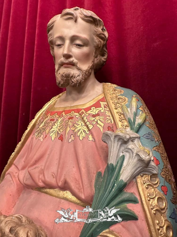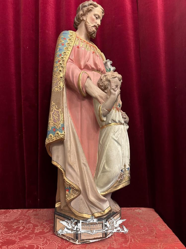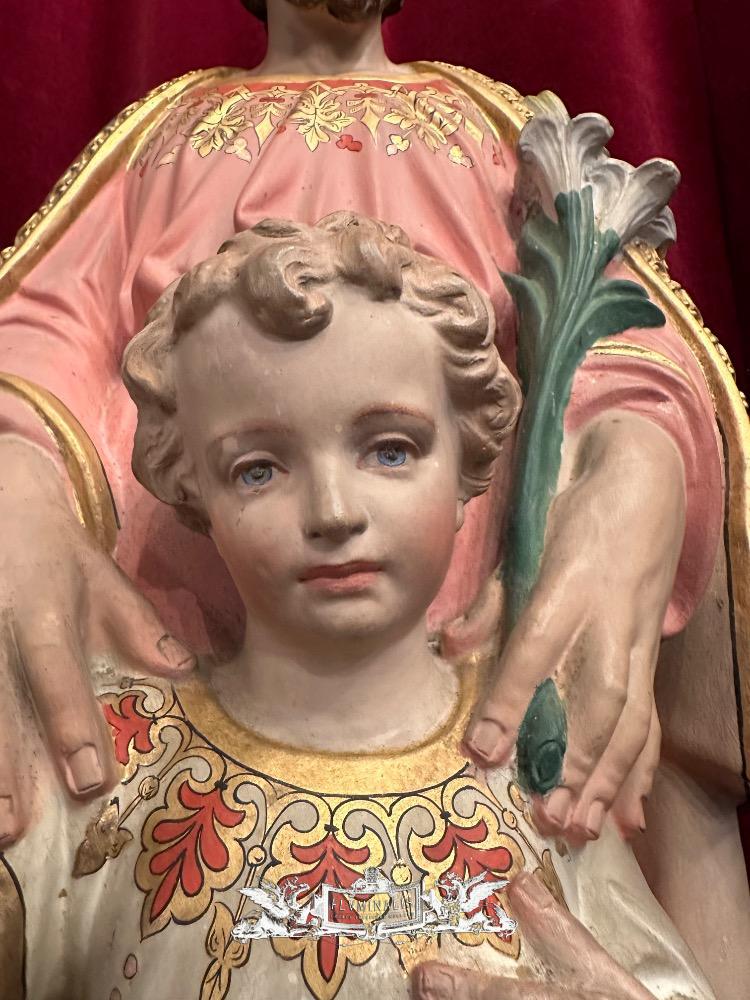 St. Joseph With Child Statue style Gothic - Style en Terra - Cotta Polychrome, France / Sainterie van Vendeuvre-sur-Barse 19 th century ( Anno 1865 )