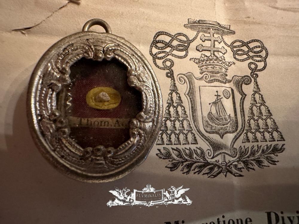 1 Reliquary - Relic Ex Ossibus St. Thomas Of Aquino With Original Document
