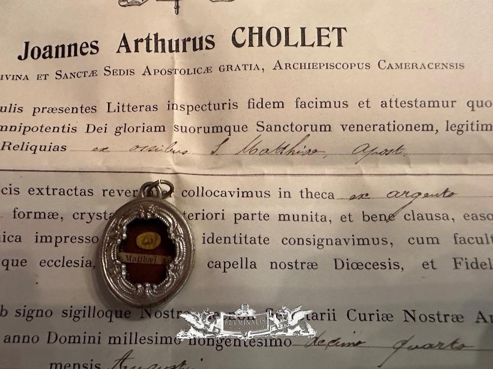 1 Reliquary - Relic Ex Ossibus St. Mattheus Apostle With Original Document