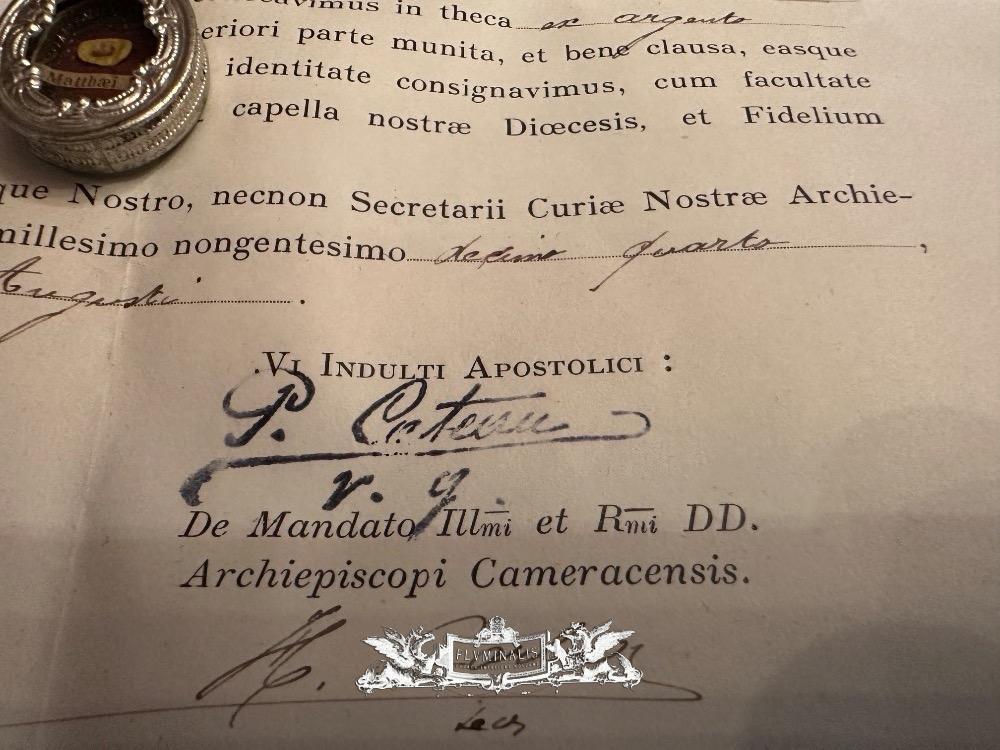 Reliquary - Relic Ex Ossibus St. Mattheus Apostle With Original Document en Silver / Glass / Originally Sealed, France 20 th century ( Anno 1914 )