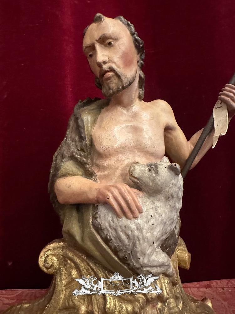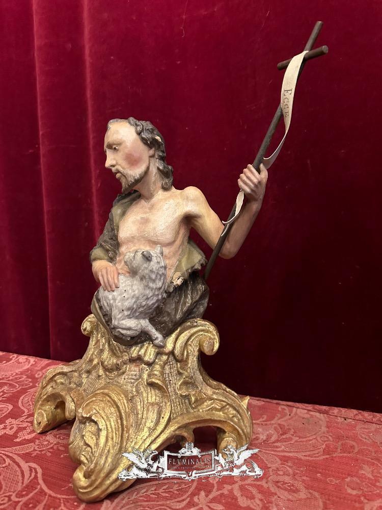 St. John Baptist Sculpture style Baroque - Style en Fully Hand - Carved Wood , Italy 18 th century ( Anno 1790 )