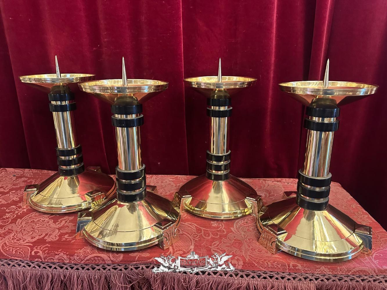 Matching Candle Holders Height Without Pin. style art - deco en Brass / Bronze / Polished and Varnished / Ebony Wood, Belgium 20 th century ( Anno 1930 )