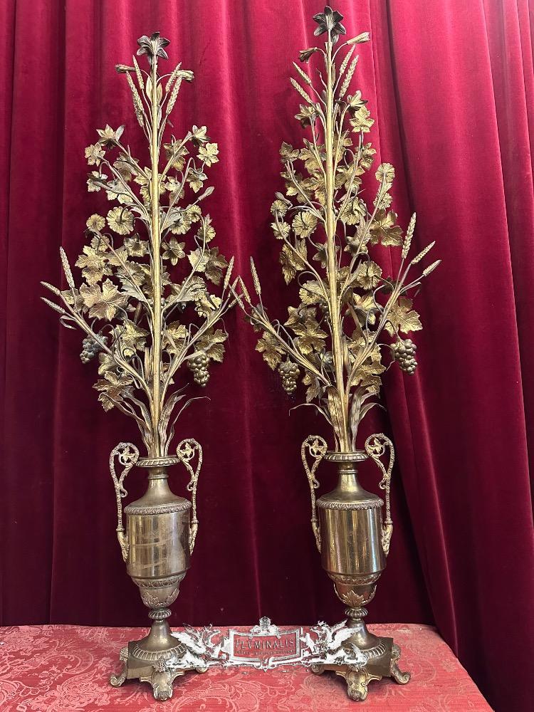 Exceptional Floral Altar Pieces 140 Cm High ! Very High Quality Enamel Representations Of St. Mary & St. Joseph style Classicistic en Brass / Bronze / Gilt / Enamel, France 19 th century ( Anno 1865 )