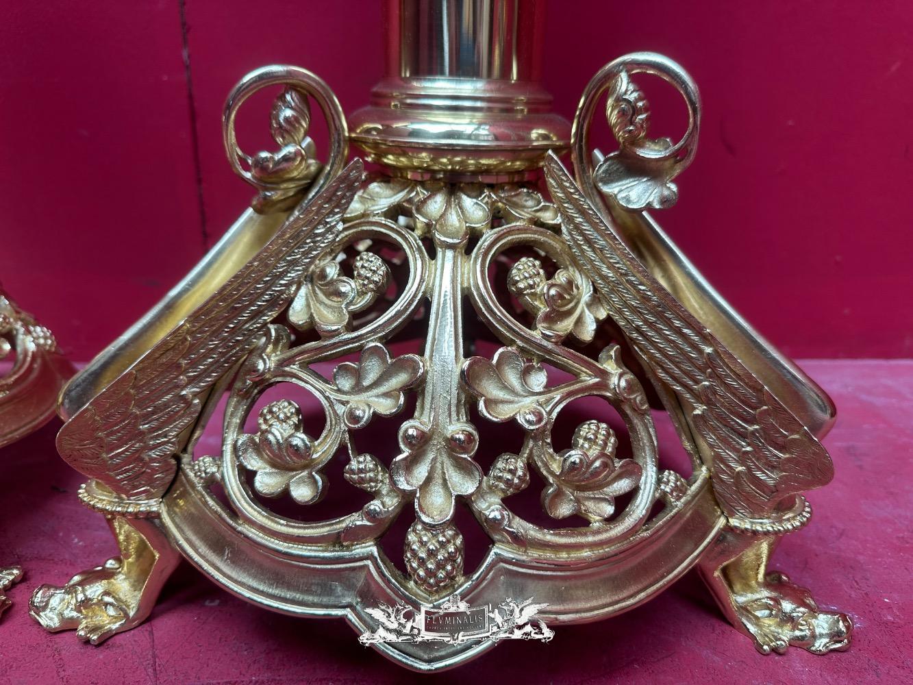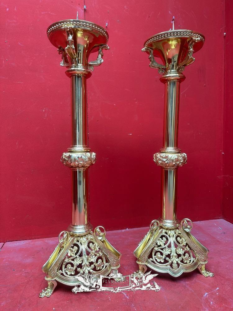 Exceptional Candle ( Paschal ) Holders Measures Without Pin style Romanesque - Style en Bronze / Polished and Varnished, France 19 th century ( Anno 1885 )