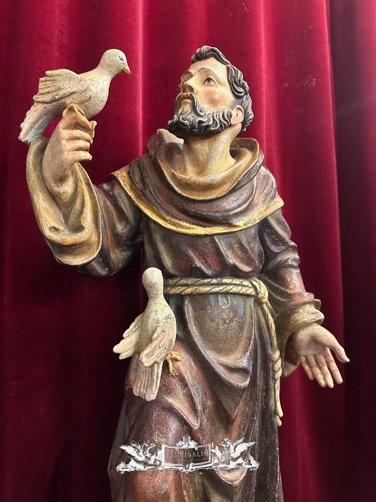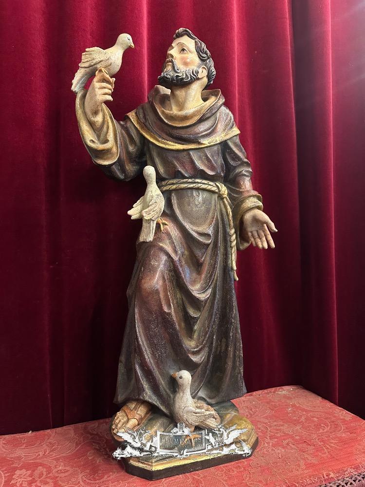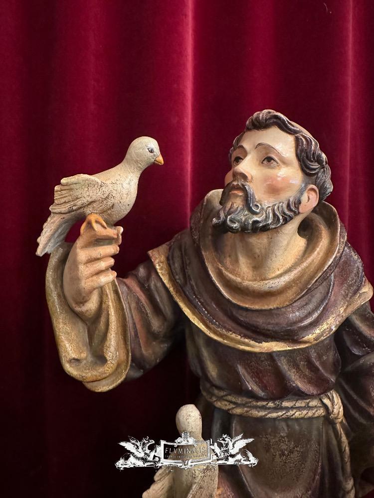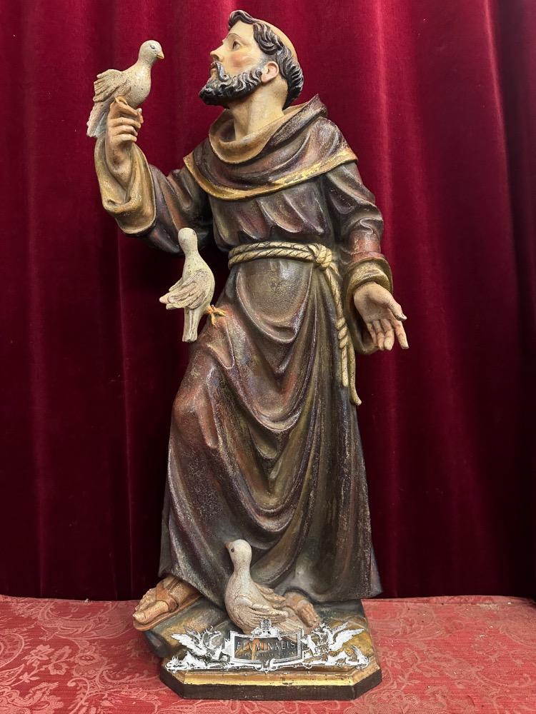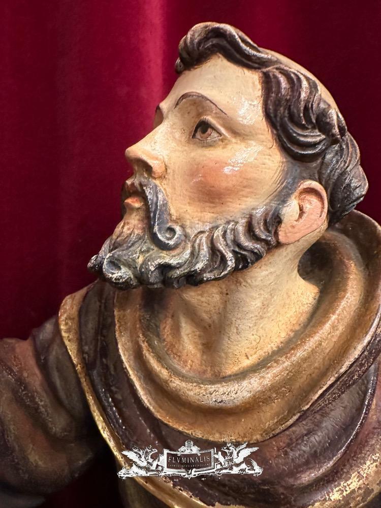 St. Francis Of Assisi Sculpture en Hand - Carved Wood Polychrome , Southern Germany 20 th century ( Anno 1950 )