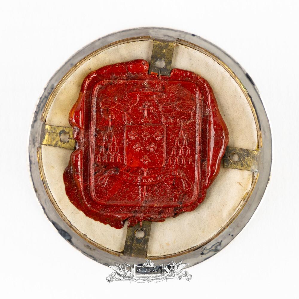 Multi Reliquary Ex Ossibus Relics : St. Paschalis Baylon, St. Dominic Confessoris, St. Augustine, Confessor, St. John Joseph Of The Cross. With Original Document en Brass / Glass / Wax Seal, Gent - Belgium 19 th century ( Anno 1869 )