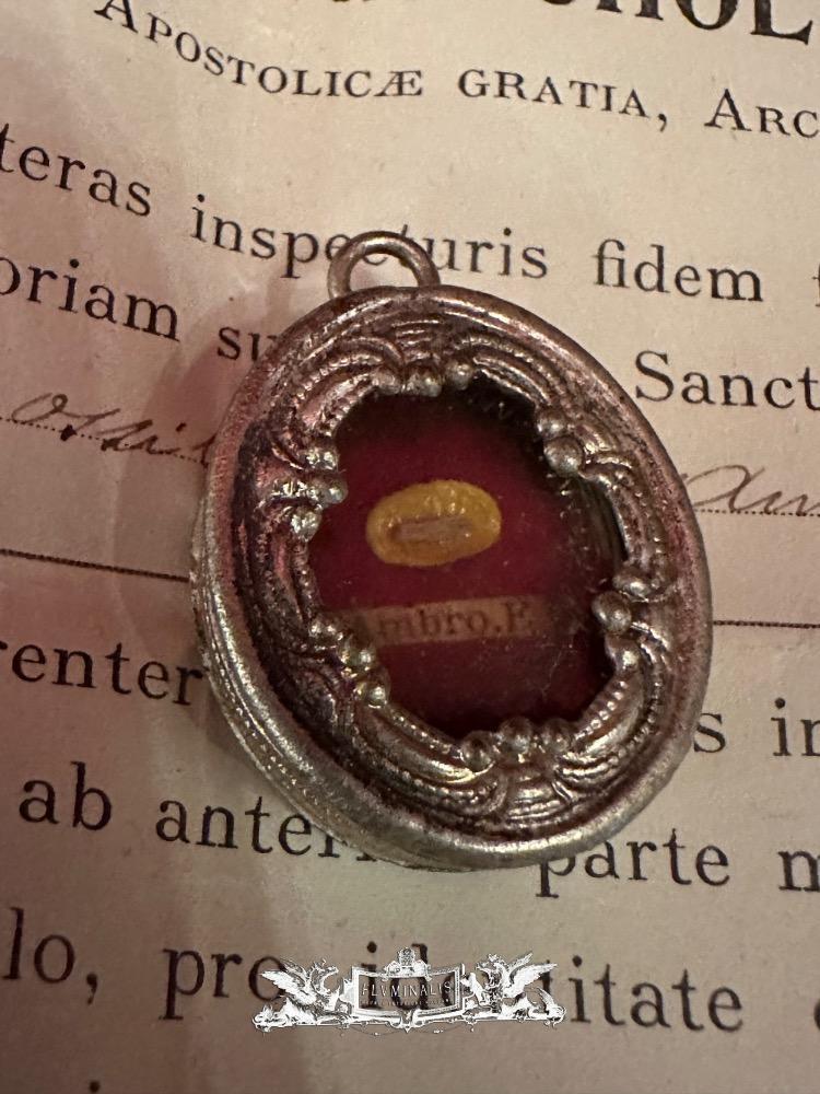 1 Reliquary - Relic Ex Ossibus St. Ambrosius With Original Document