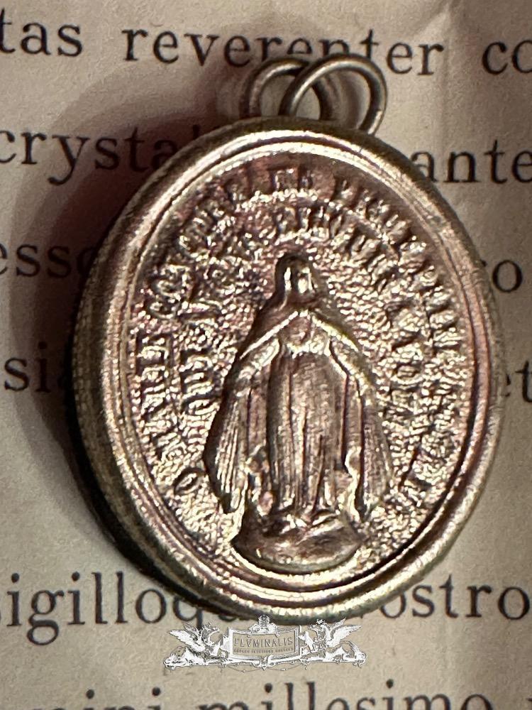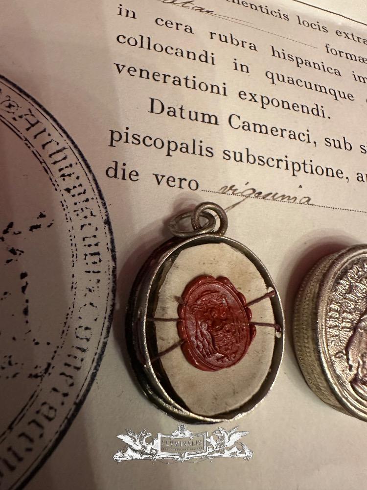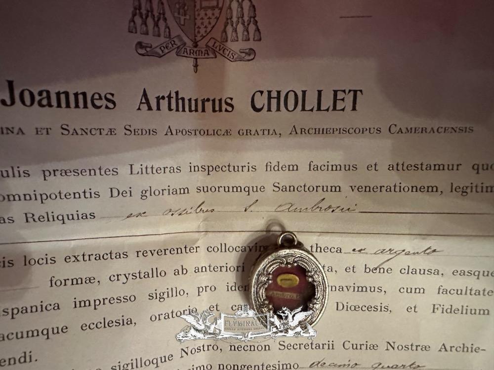 Reliquary - Relic Ex Ossibus St. Ambrosius With Original Document en Silver / Glass / Originally Sealed, France 20 th century ( Anno 1914 )