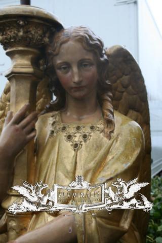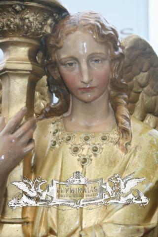 MATCHING PAIR OF TABERNACLE-ANGELS, TERRA-COTTA, 116 CM / 46” , MANUFACTURED BY REGONY-PARIS ANNO ABOUT 1865.
