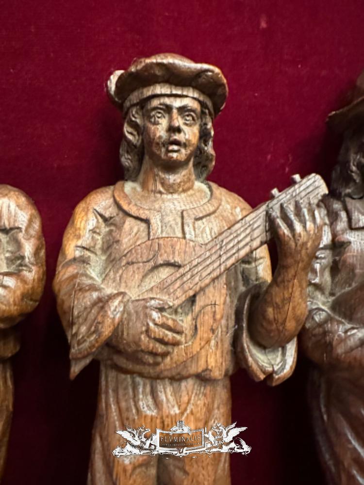 Itinerant Musiciens / Vagabond Pipers en Fully Hand - Carved Wood Oak, Belgium 19 th century