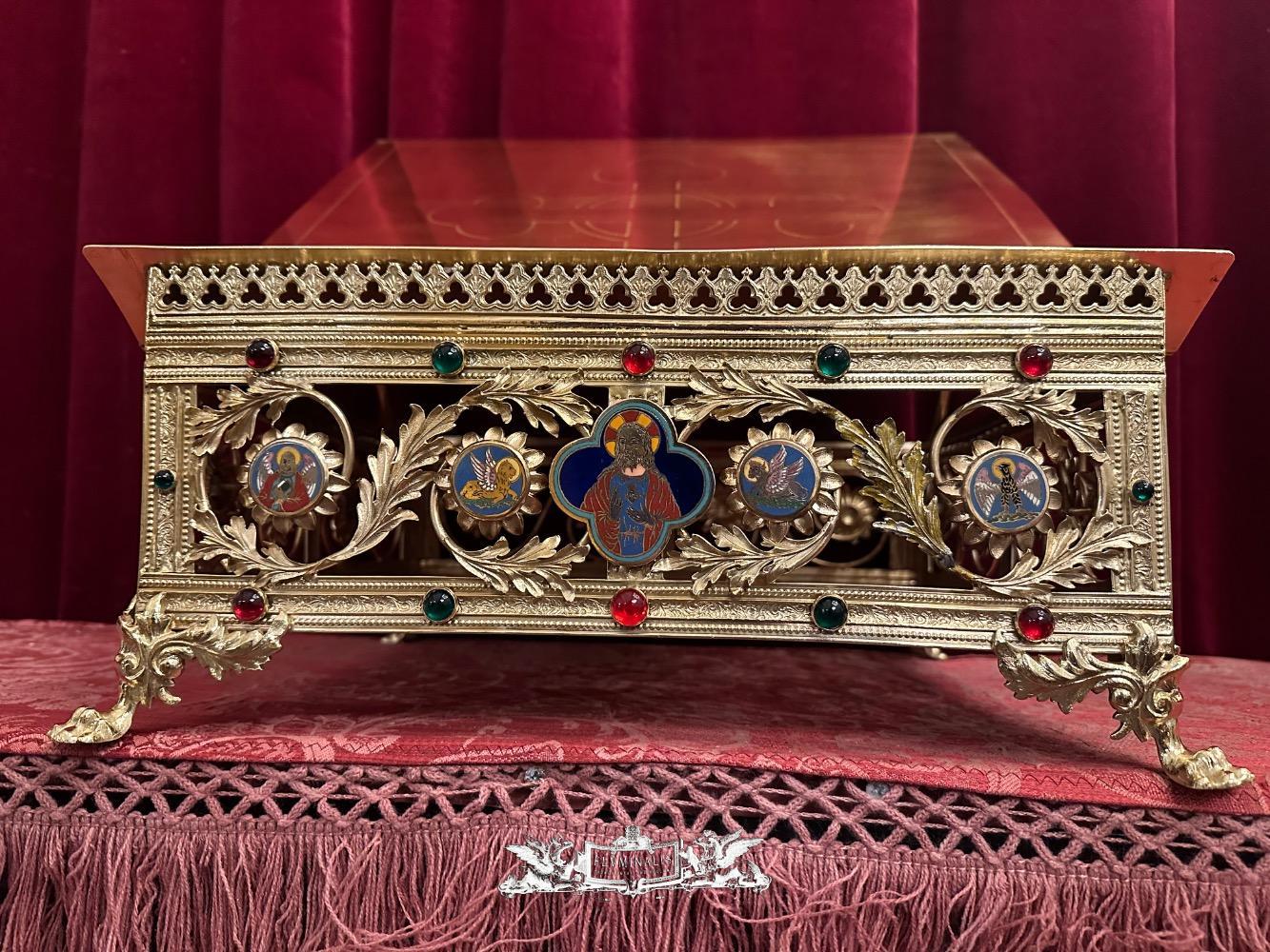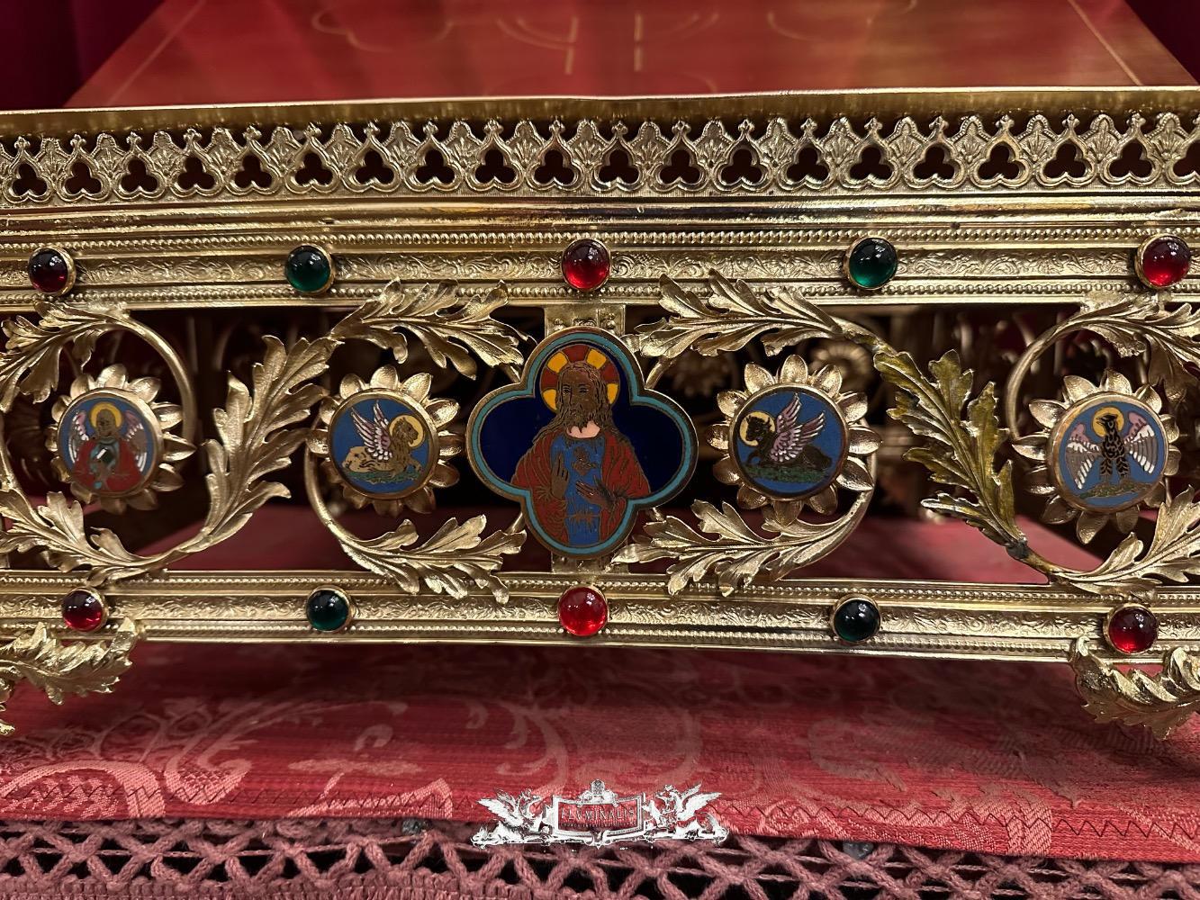 Missal Stand Adustable en Brass / Bronze / Enamel / Stones / Polished and Varnished, France 19 th century ( Anno 1865 )