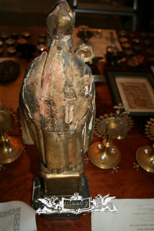 RELIQUARY / STATUE , ST. ELIGIUS / ST. ELOY , EX OSSIBUS RELICS , HAND-CARVED WOOD , 47 CM / 18.5” , FRANCE , ANNO ABOUT 1735.