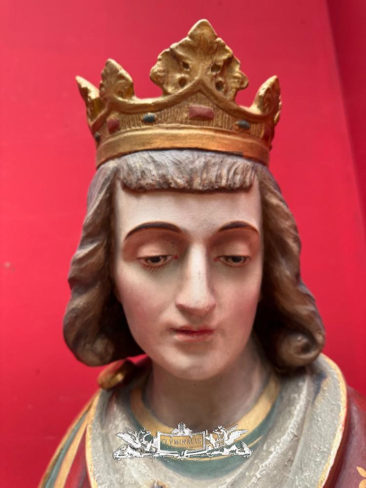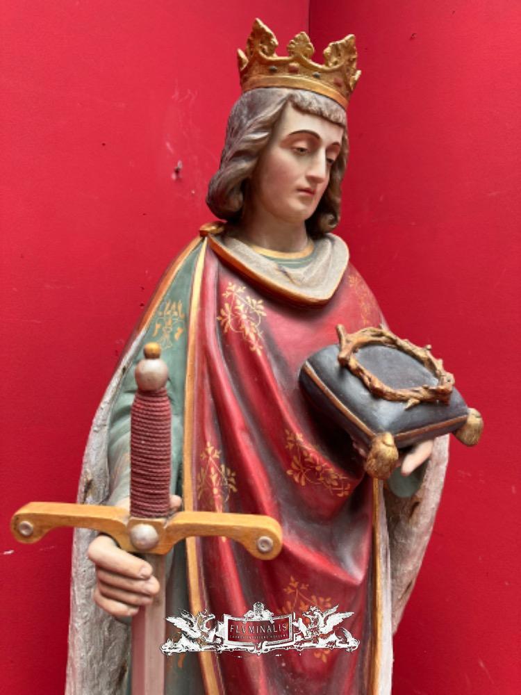 St. Louis Statue style Gothic - Style en Plaster polychrome, France 19 th century ( Anno 1885 )