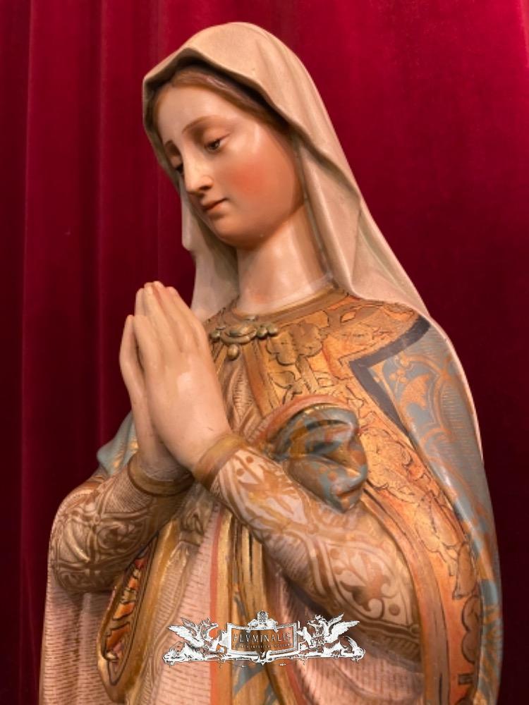 St. Mary Statue style Gothic - style en Plaster polychrome, Belgium 19 th century