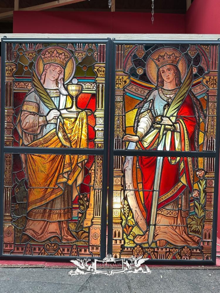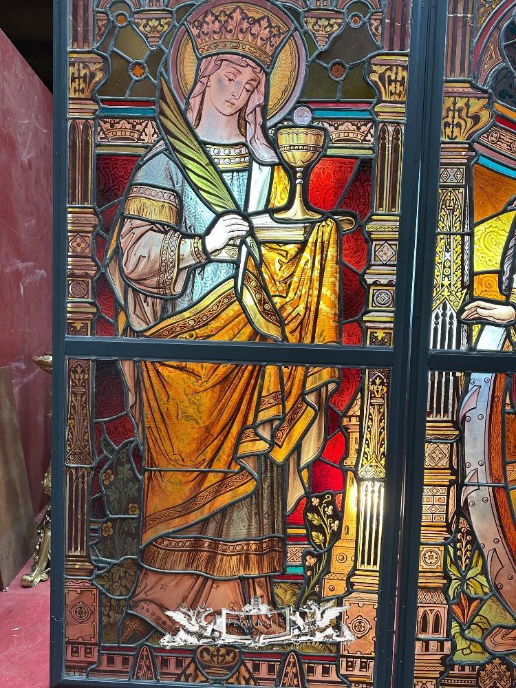 Pair Gothic - Style Stained Glass Windows St. Barbara & St. Catherine Of Antiochia. Architect Molenaar