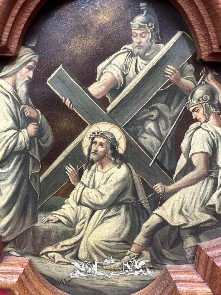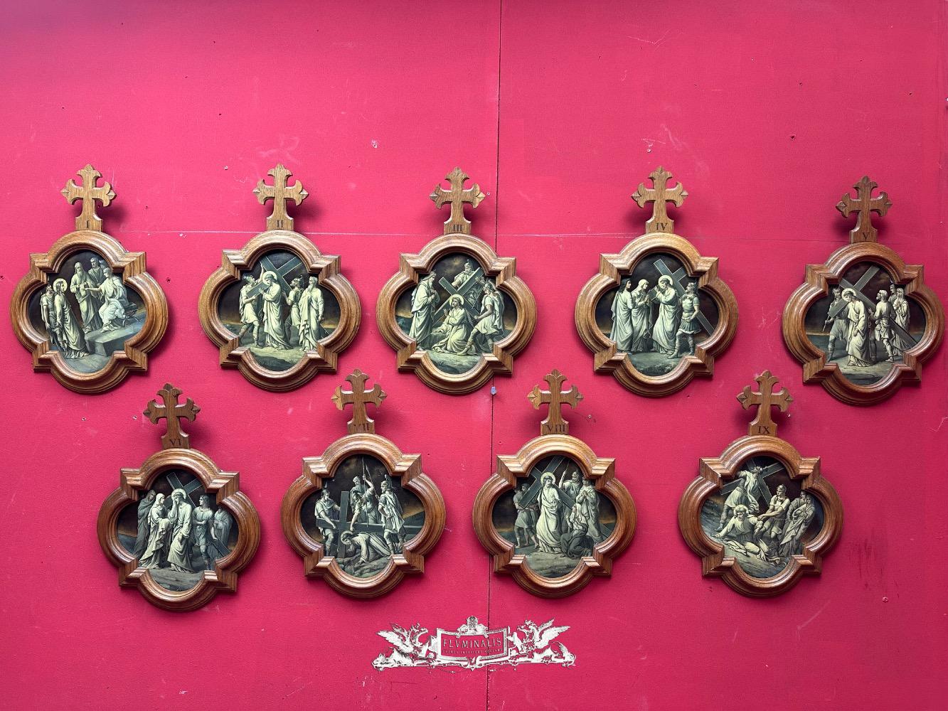 Stations Of The Cross style Gothic - Style en Wood Oak Frames / Painted on Brass, France 19 th century ( Anno 1865 )