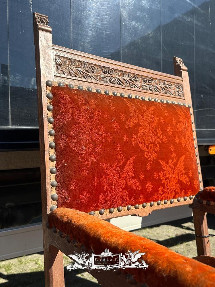 Chairs style Gothic - Style en Oak Wood / Fabrics, Belgium 19 th century