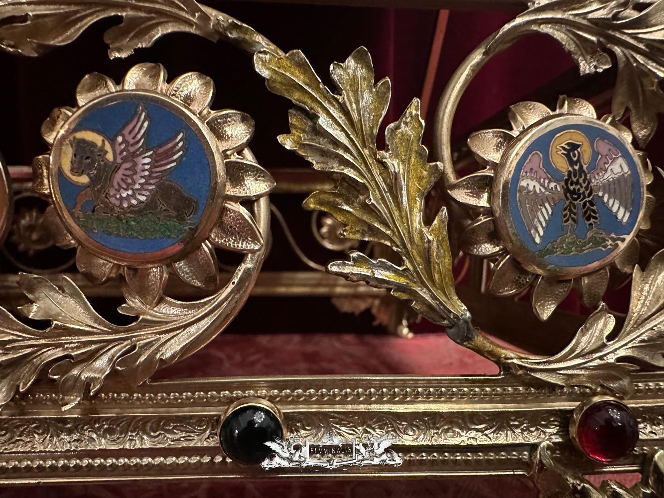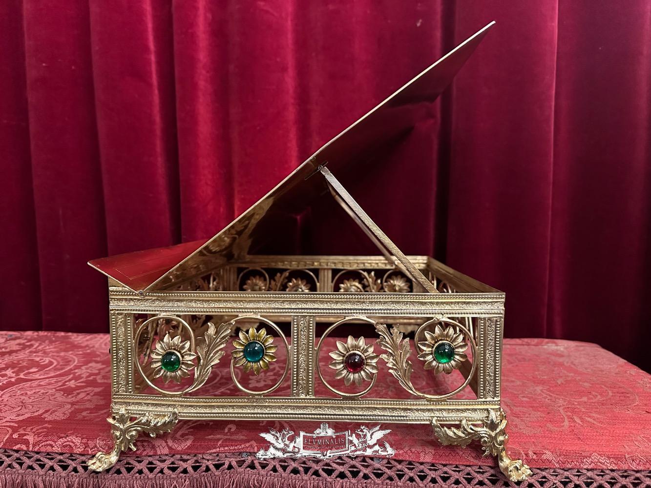 Missal Stand Adustable en Brass / Bronze / Enamel / Stones / Polished and Varnished, France 19 th century ( Anno 1865 )
