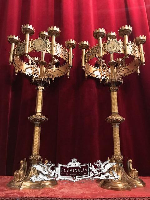 Candle Holders style Gothic - style en Full Bronze / Polished , France 19th century ( anno 1875 )