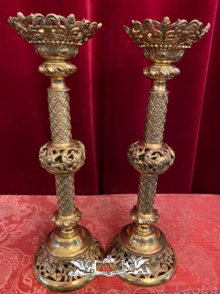 Candle Holders style Romanesque - Style en Bronze Gilt, France 19 th century ( Anno 1890 )