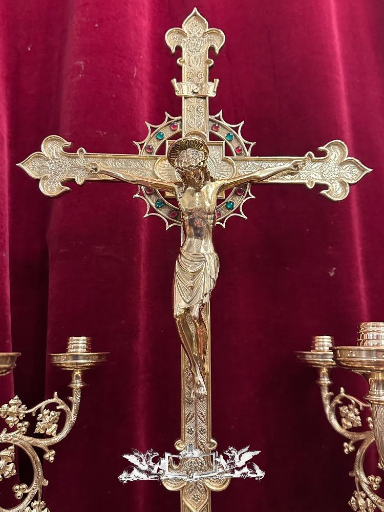Exceptional Altar - Set style Gothic - Style en Bronze / Polished and Varnished / Stones, Belgium 19 th century ( Anno 1865 )